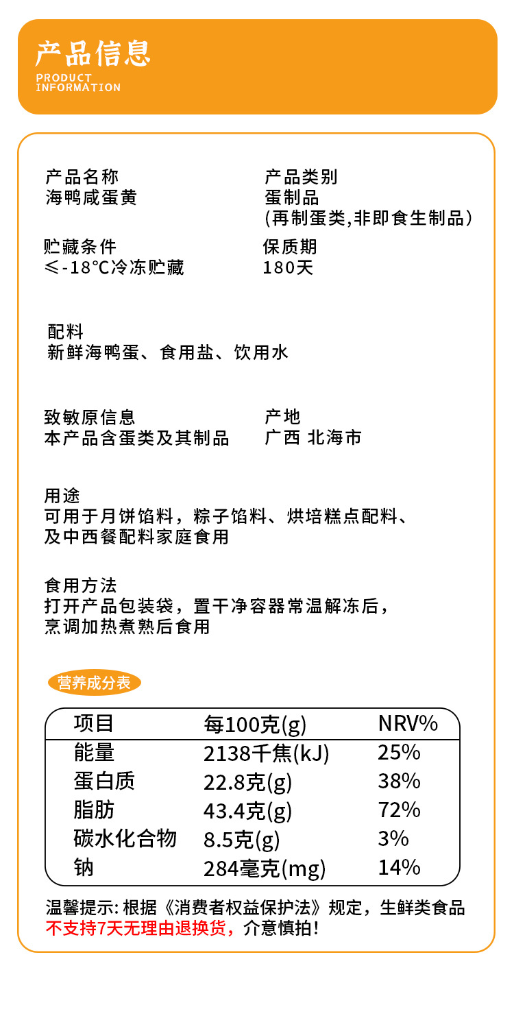 ![]() | Salted egg yolk (10-13 grams per piece) | 100шт: ¥1.20, 10000шт: ¥1.18 | 98600 | 6082195578872 |