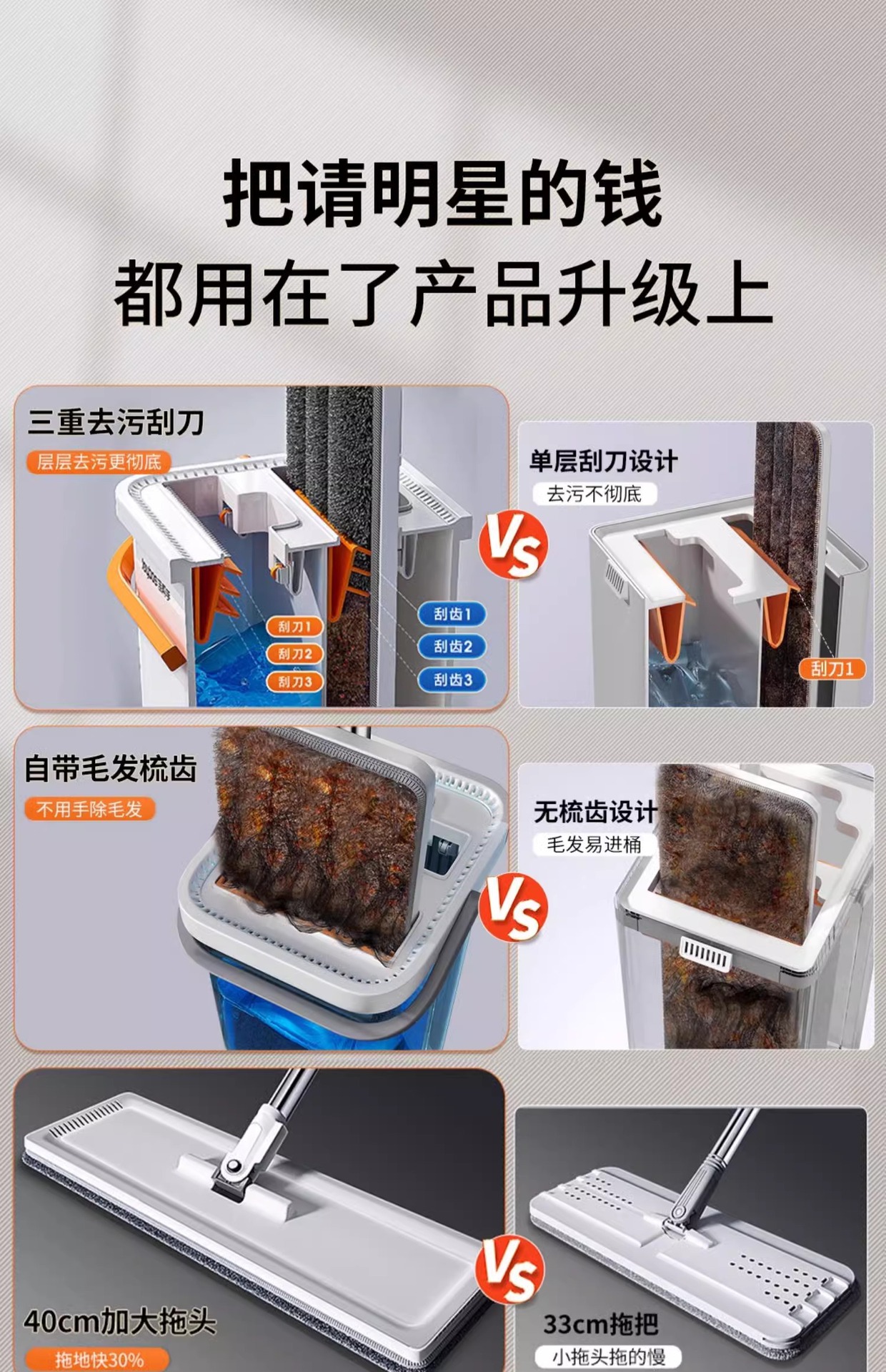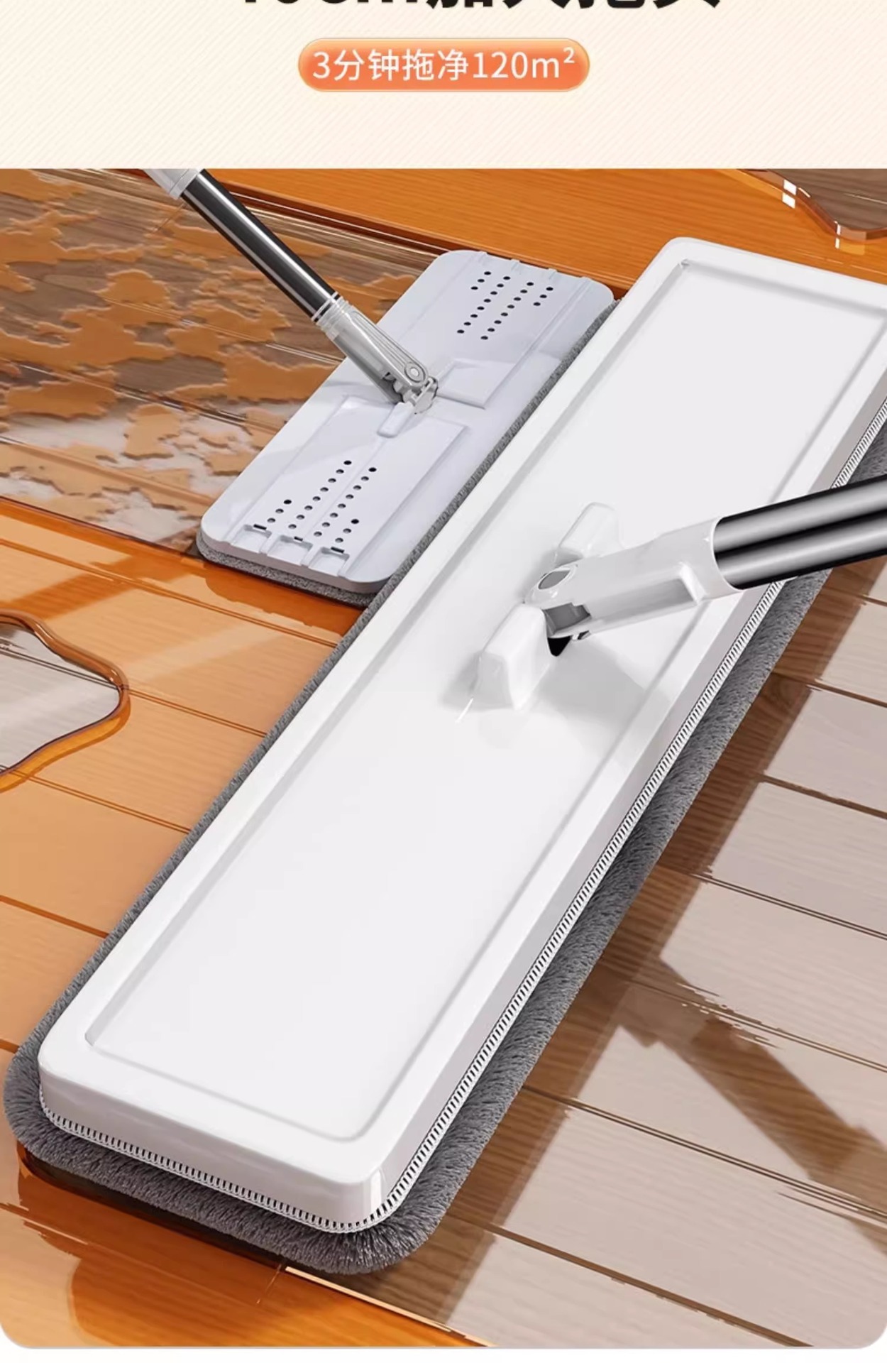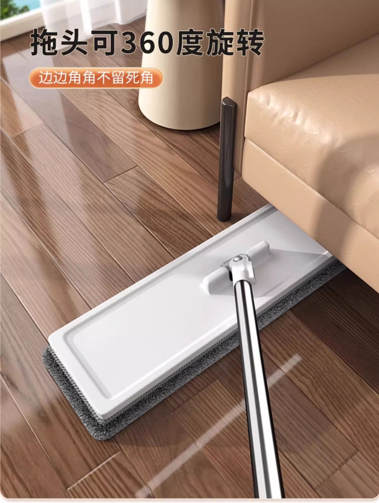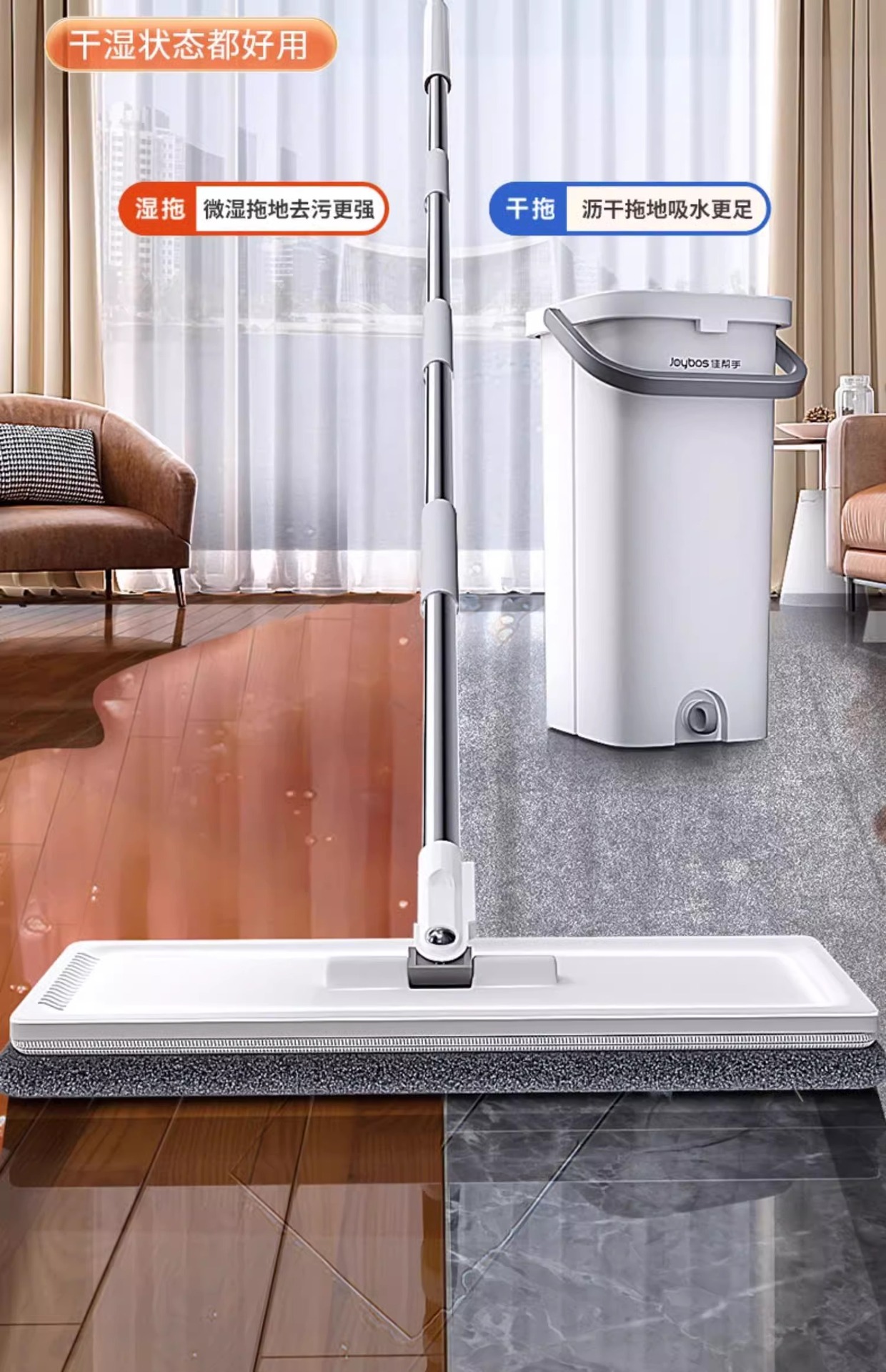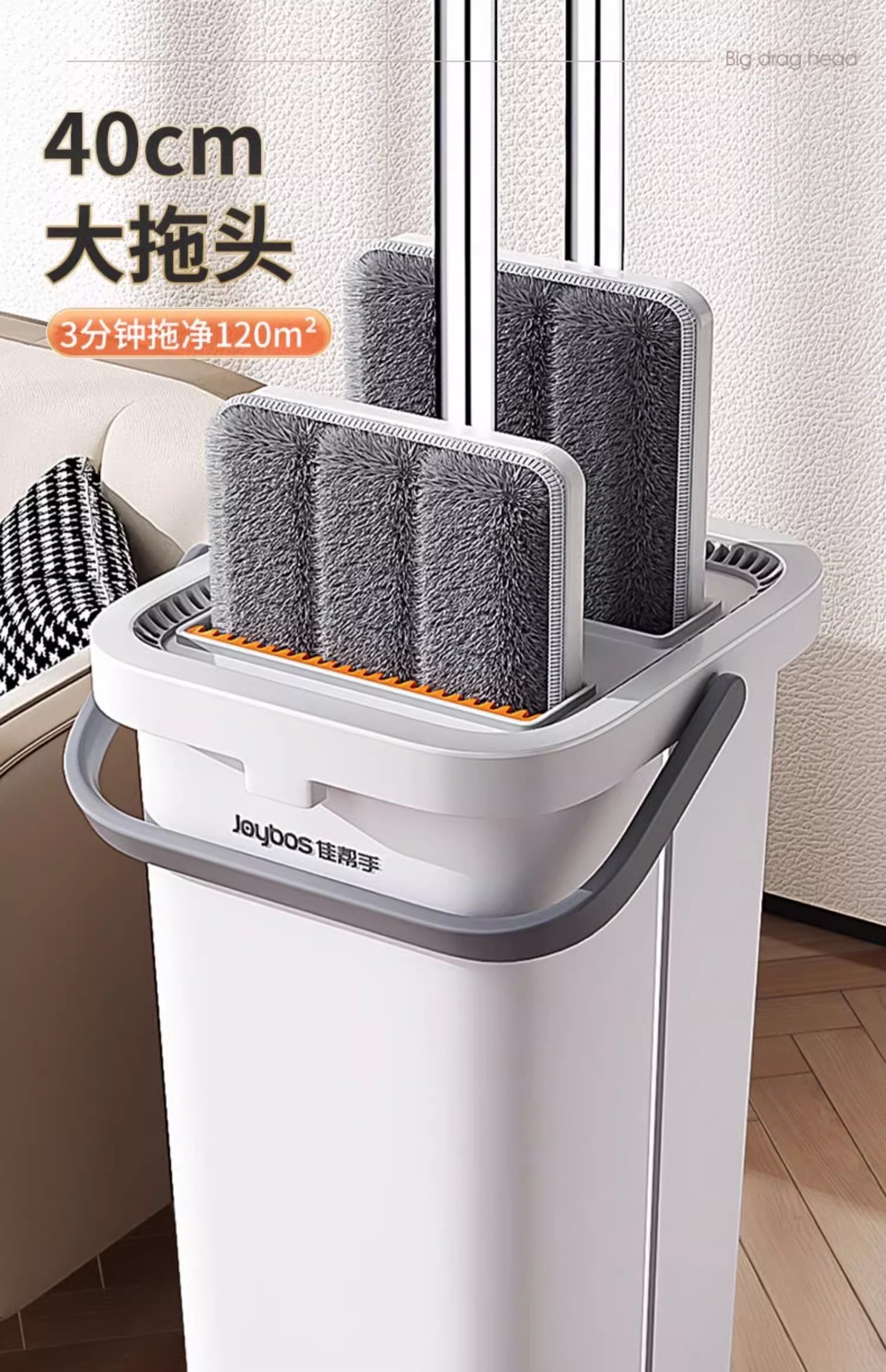 Jiabanshou 2025 Моп с ручным управлением для дома, плоский моп для уборки одним движением, моп с скребком для чистки полов, четырехстороннее отжимание воды