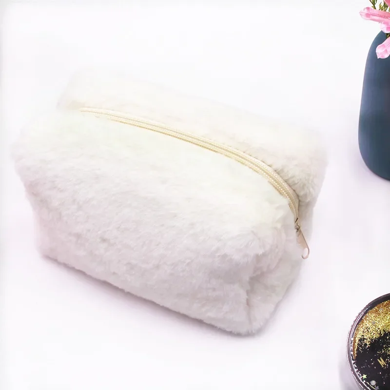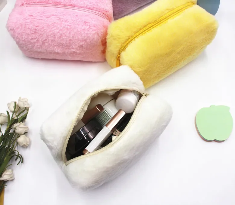Косметичка Для Девочек Однотонная Новая Пуховая Пенал Сумка Конфетного Цвета Портативная Мягкая Восковая Косметичка