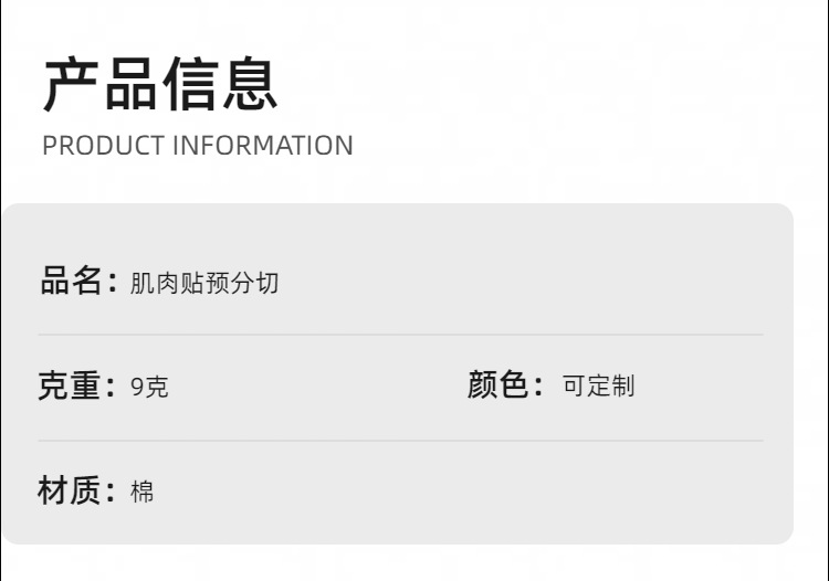![]() | Rose red (other colors can be customized by contacting customer service) | Shoulder muscle tape - henkel adhesive | ¥1.6 / ≈ 19 ₽ | 999998 | 5934463937457 | |