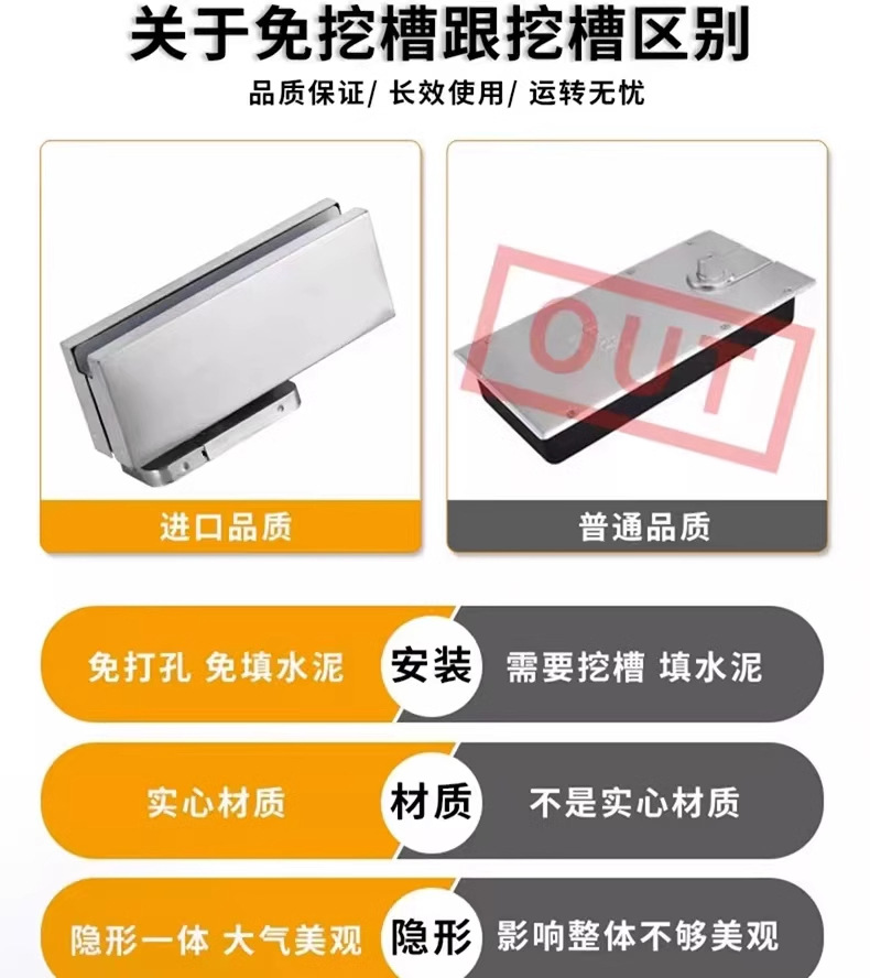 скрытая пружина без отверстий, без щелей, для безрамных стеклянных дверей