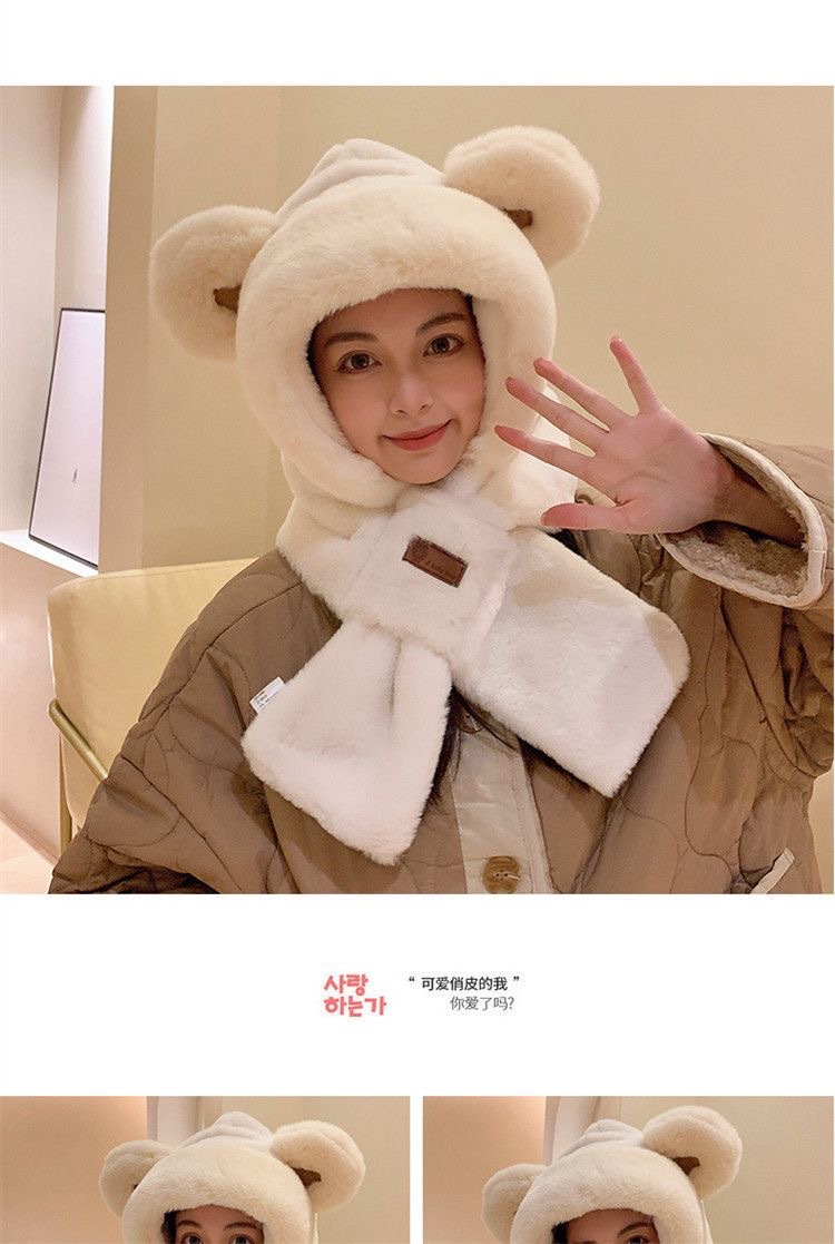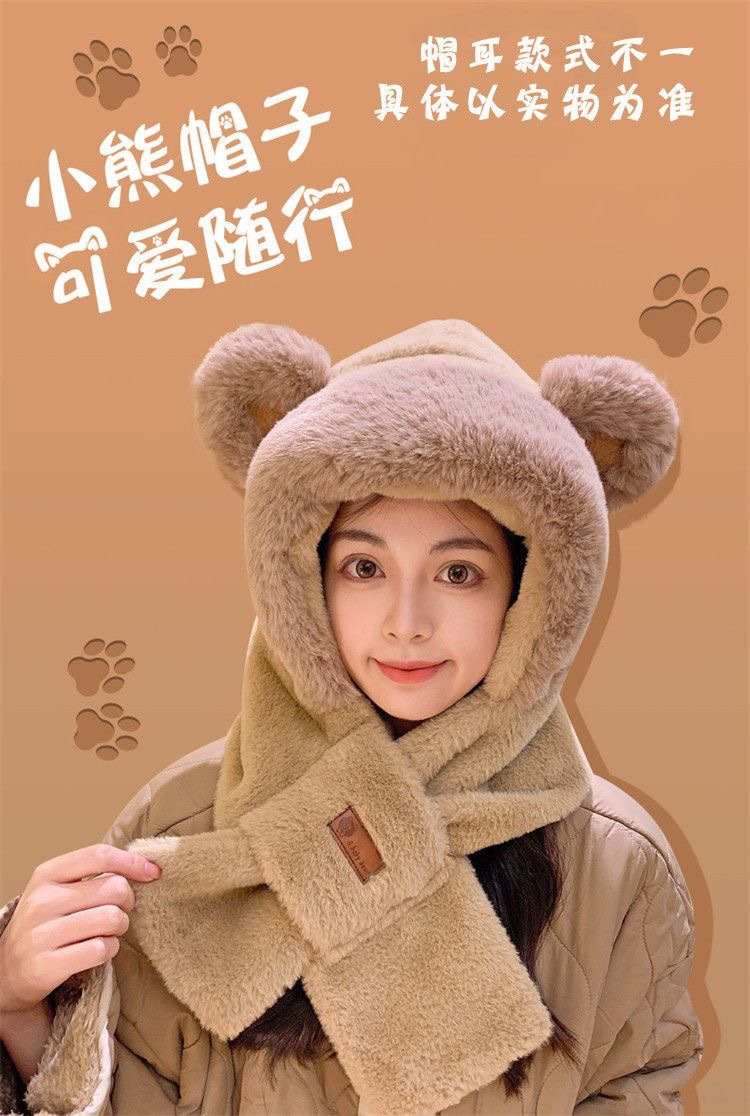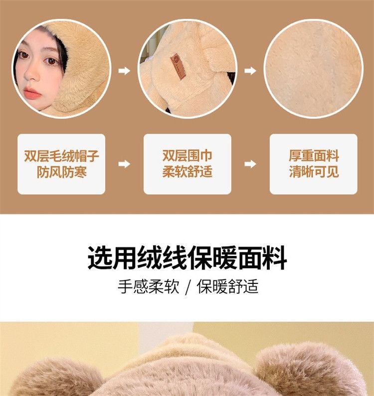 Шапка с маленьким медвежонком, детский зимний теплый шарф, комбинезон с капюшоном для велоспорта, холодозащитные, с защитой для ушей, милый плюшевый шарф-капюшон