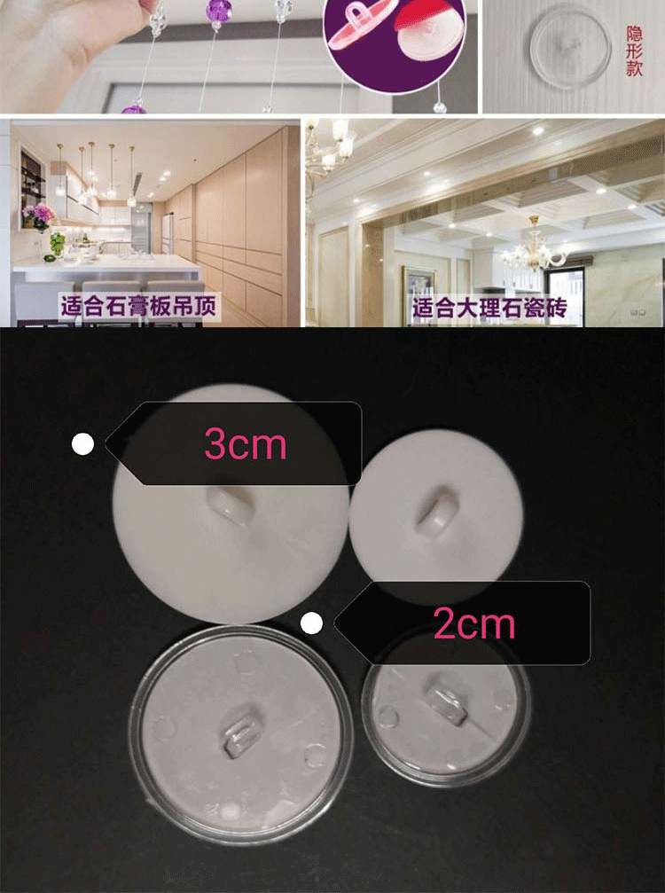 Клеевой крючок для потолка, маленький диск 3 см, бесследный, прозрачный, сильный, белый