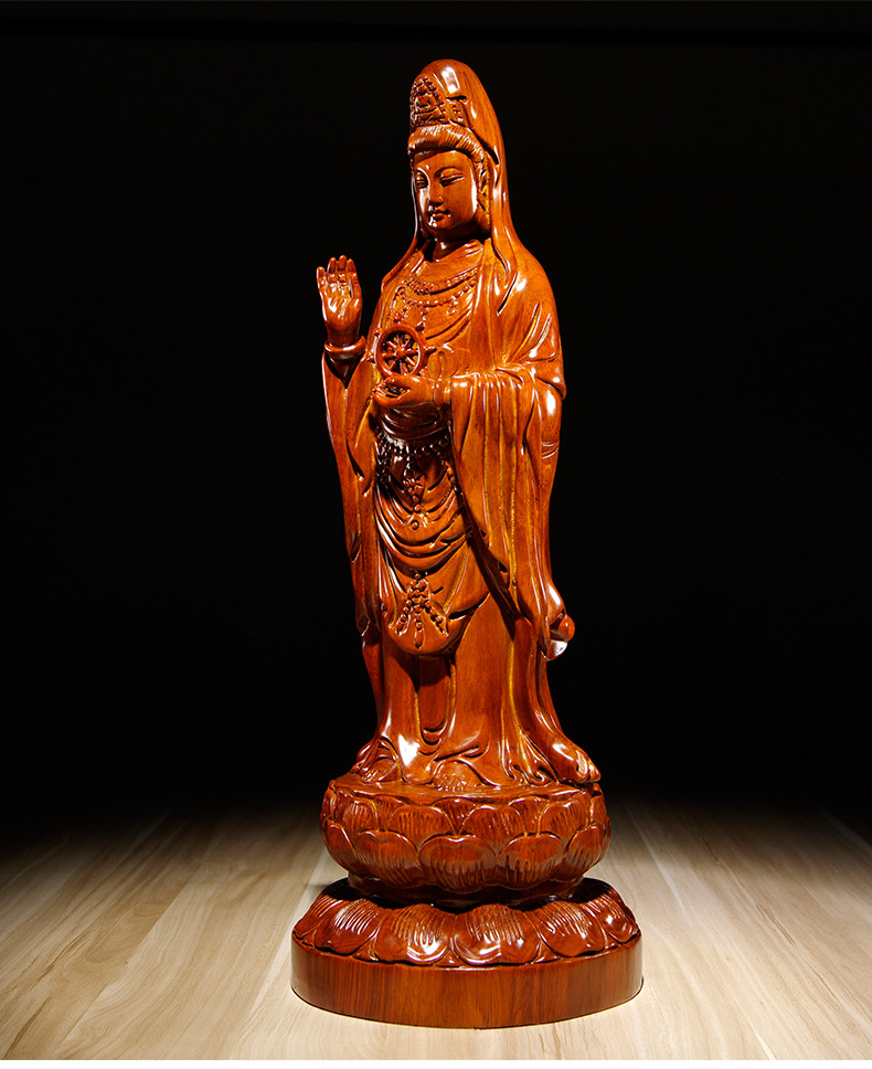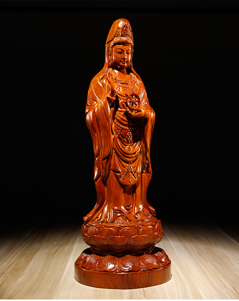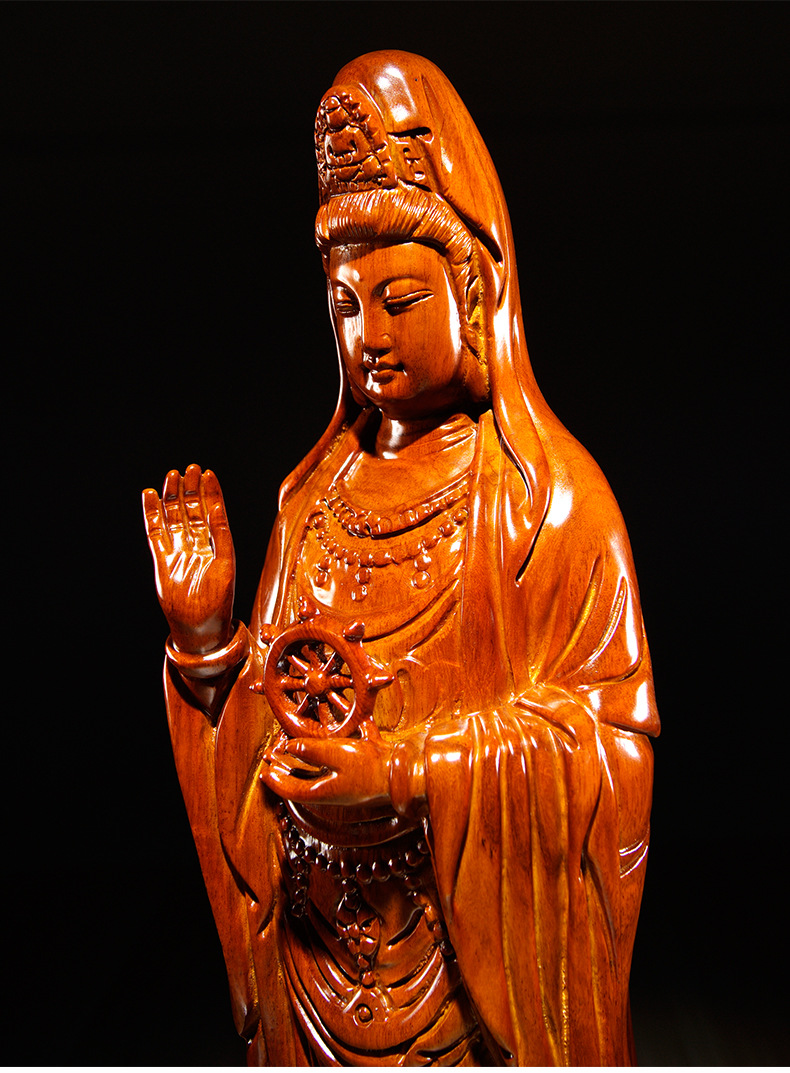 Хуали Деревянная Резьба Гуаньинь Бодхисаттва Будда Статуи Декор Фалун Наньхай Гуаньинь Дом Гостиная Декоративные Ремесла