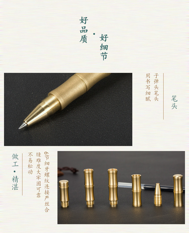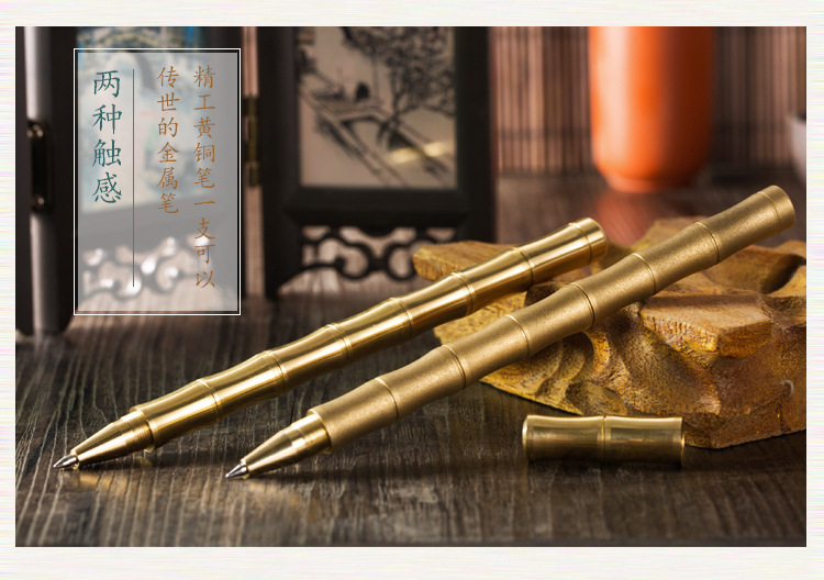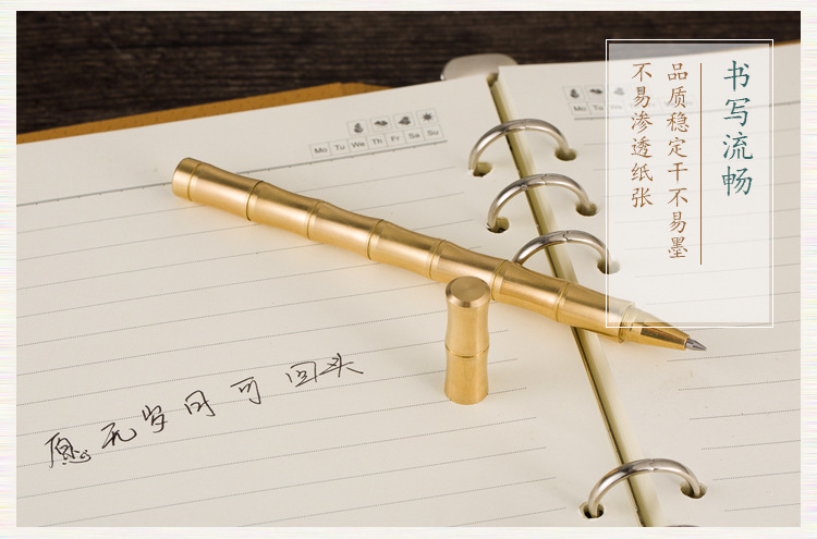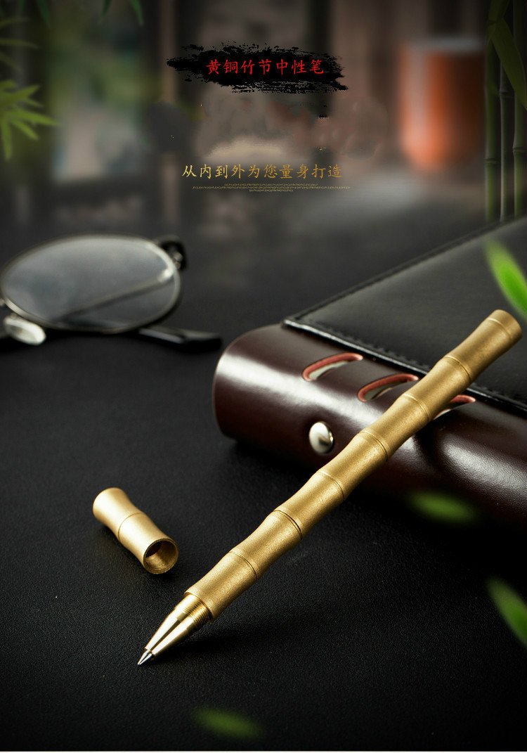 Винтажная латунная бамбуковая гелевая ручка, ручная работа, бронзовая бусина, подписная ручка, бизнес-подарок, письмо для студентов