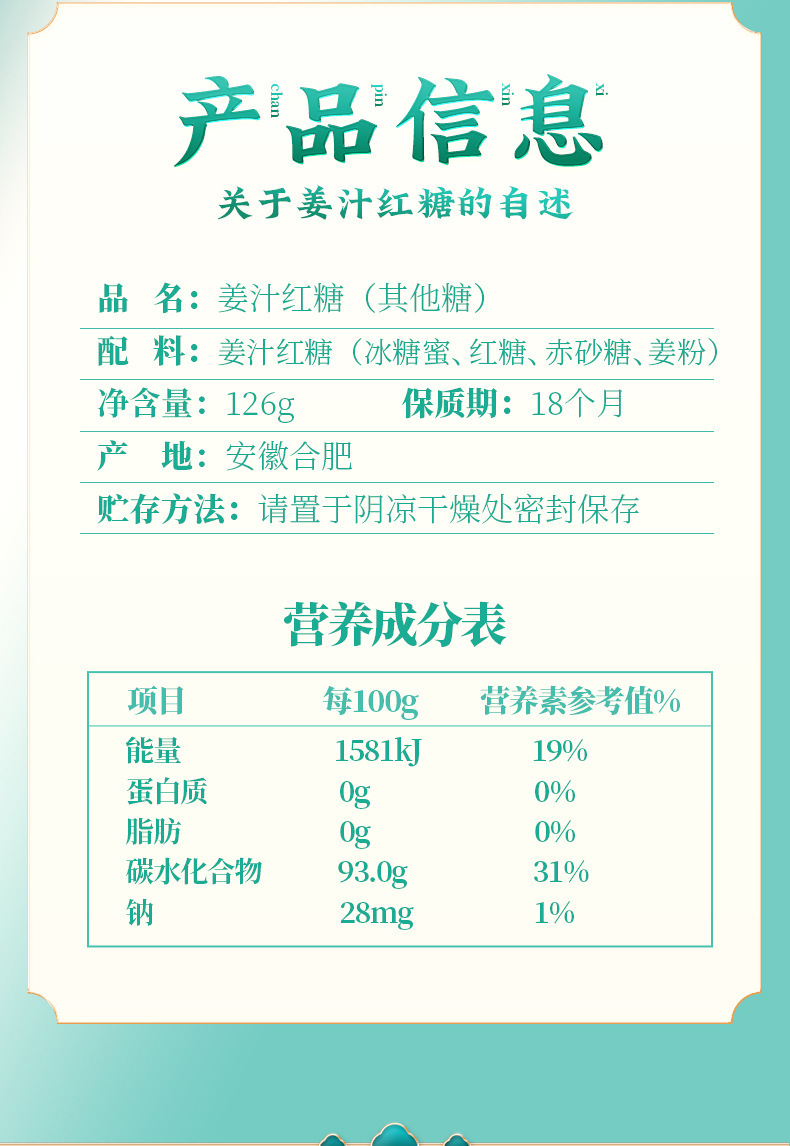 ![]() | Ginger brown sugar (126g/box) | ¥9.5 / ≈ 115 ₽ | 9996 | 5781156639382 | |