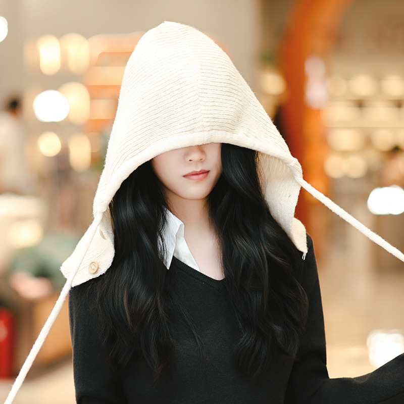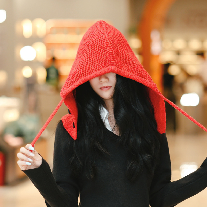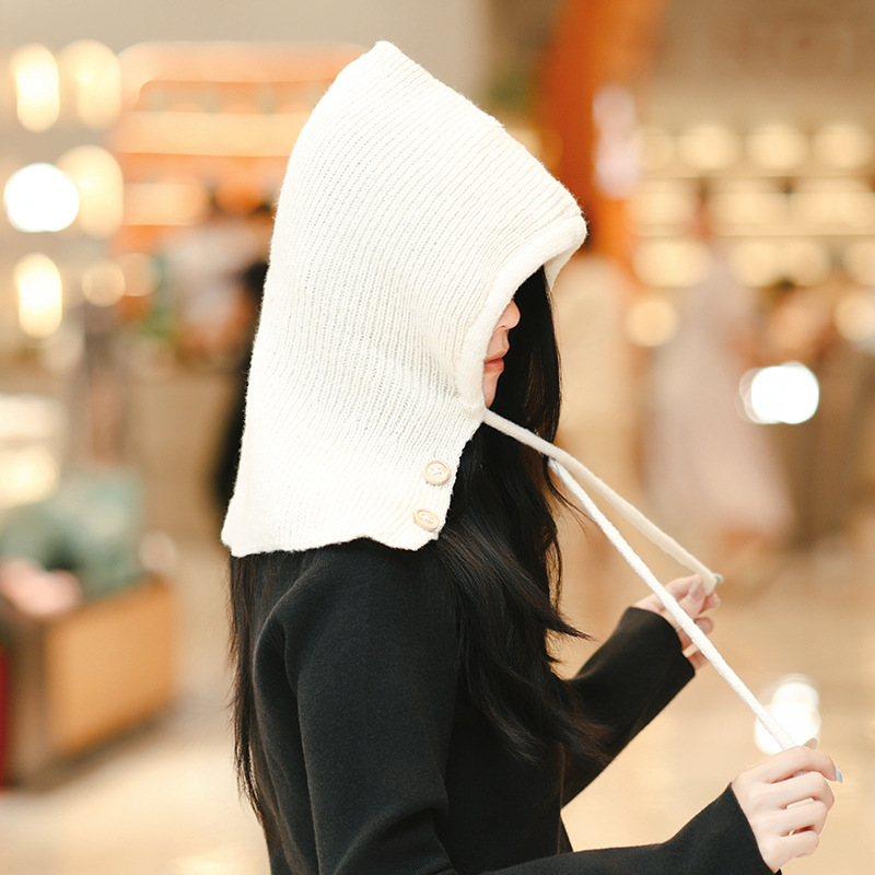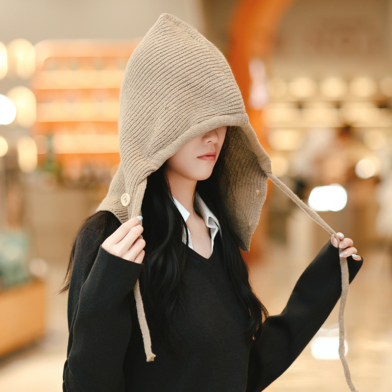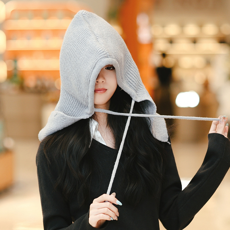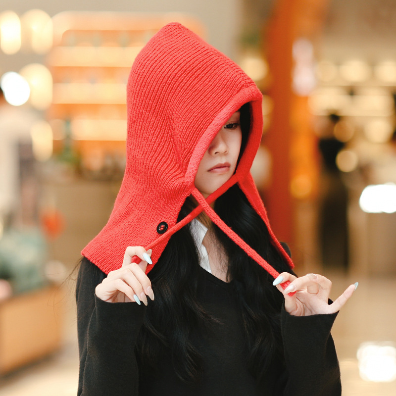 Женская зимняя шершавая вязаная шапка, шапка и шарф, одноцелевой балаклава для защиты лица и ушей, корейская шапка для тепла