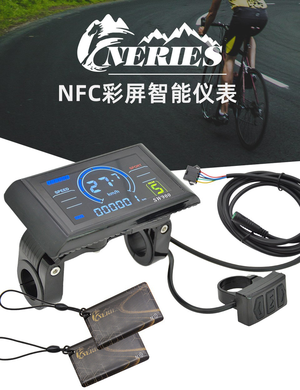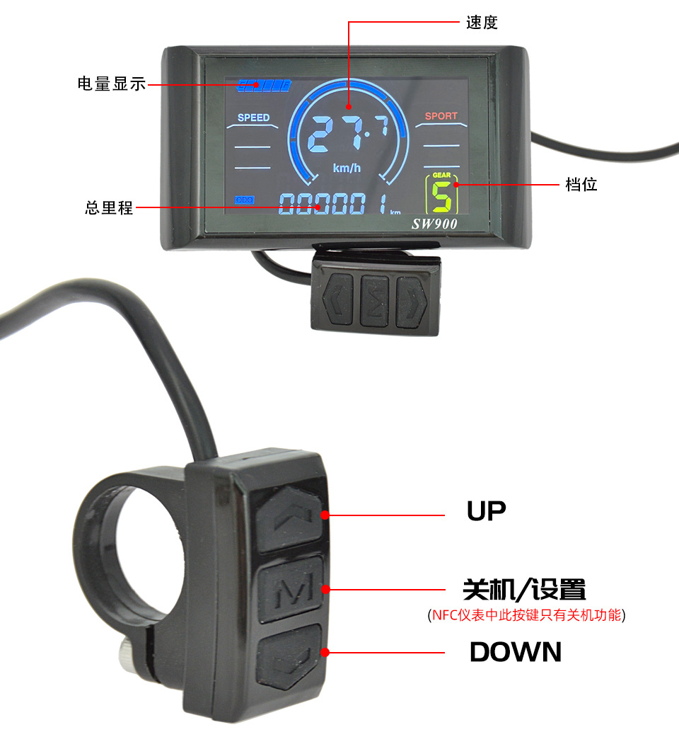 Электровелосипед с NFC функцией умный цветной экран инструмент SW900 горный велосипед ЖК-дисплей пятижильные части модификации