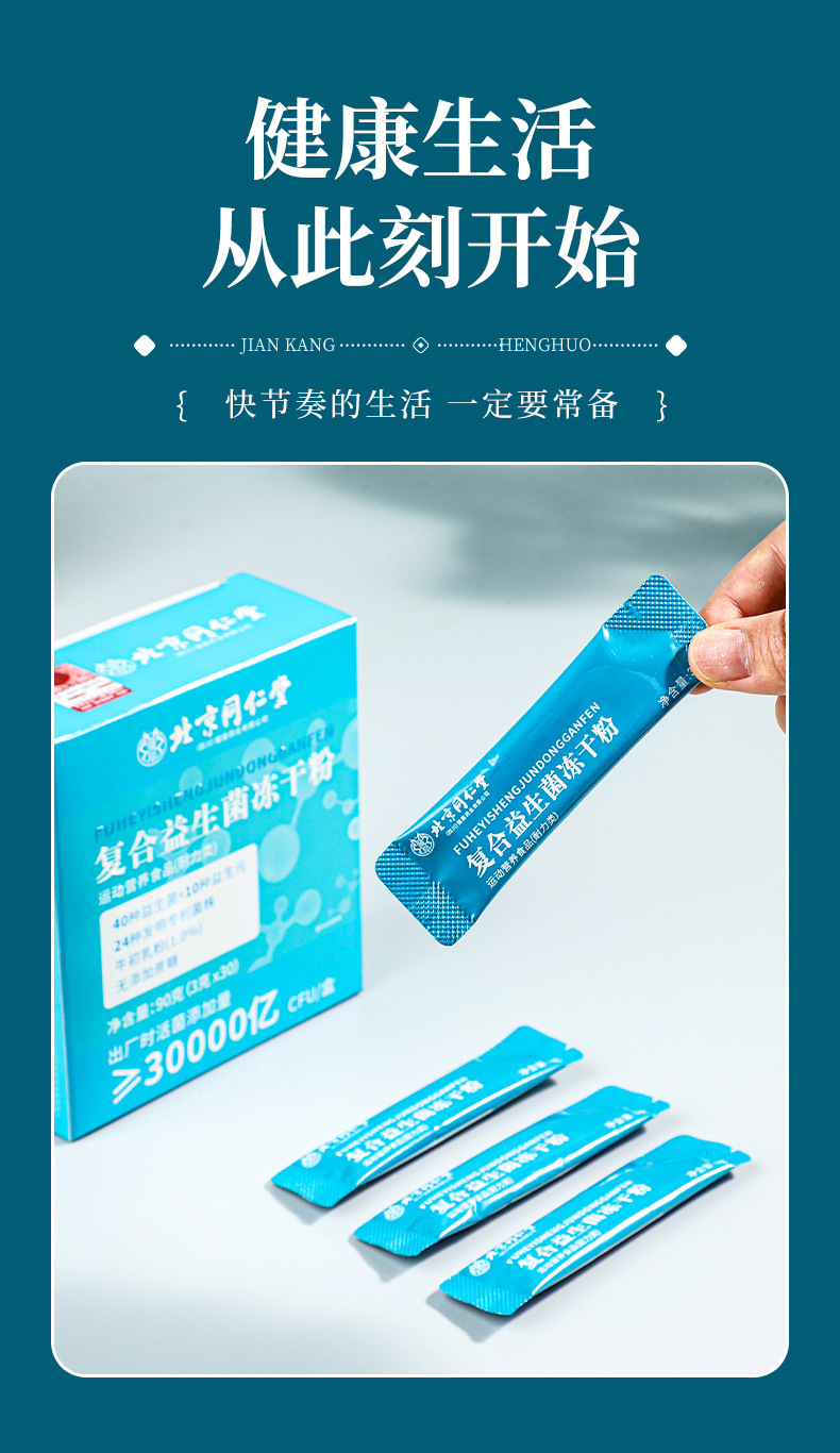 Пробиотики в порошке замороженные с составом Beijing Tongrentang 3 триллиона КОЕ/коробка для нормализации кишечника в наличии партия
