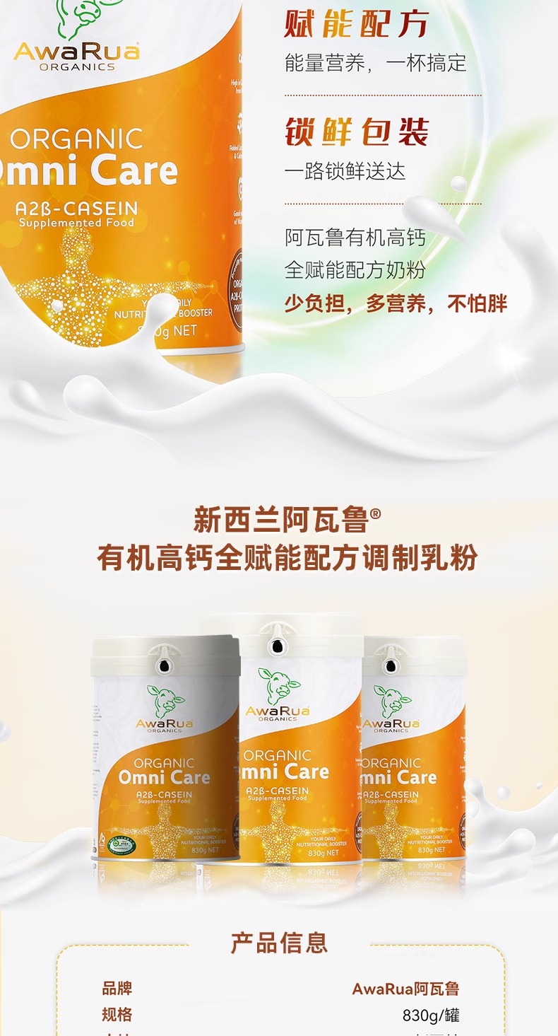 Молочный порошок Awalu из Новой Зеландии, мульти-нутриентный, цельный, в банке 830г, органический A2