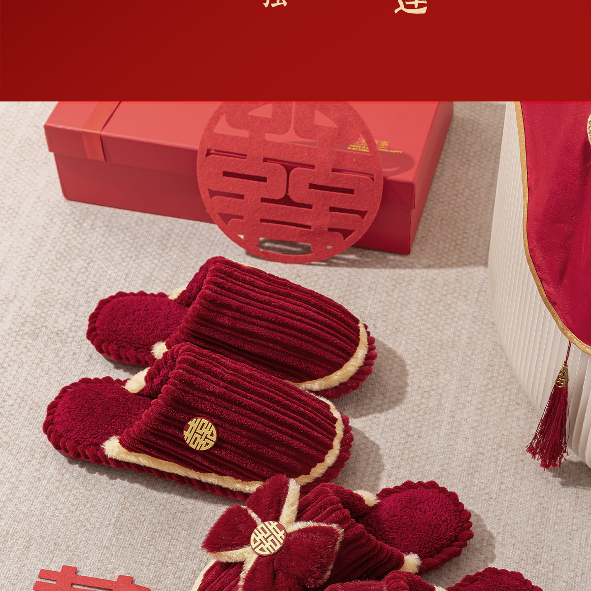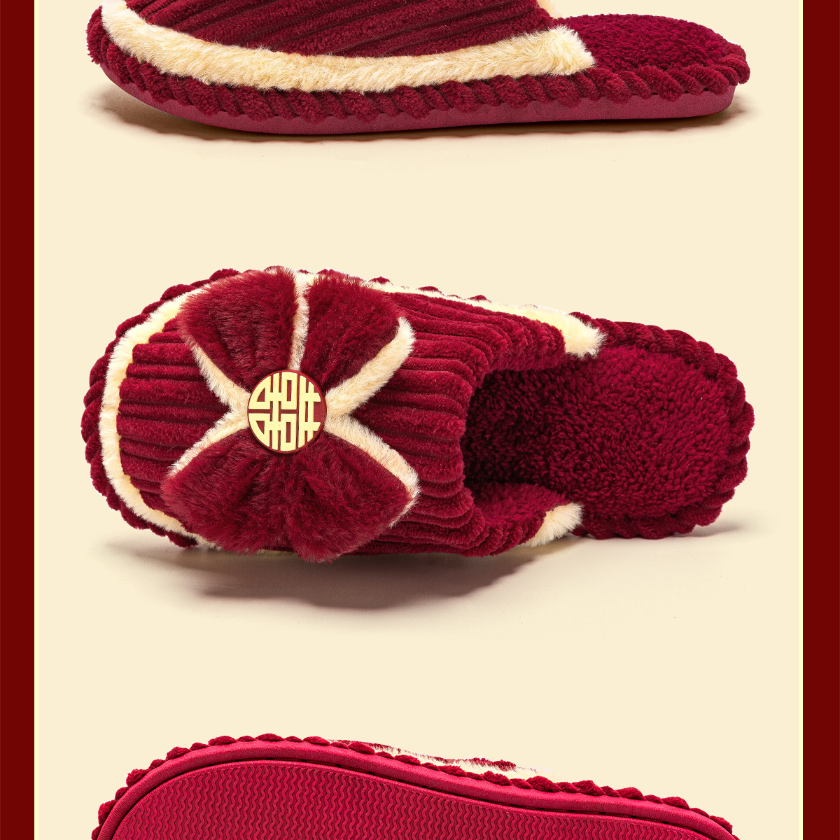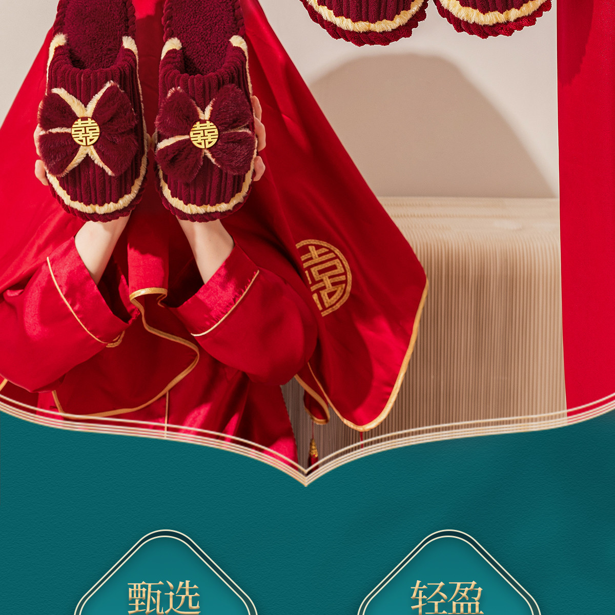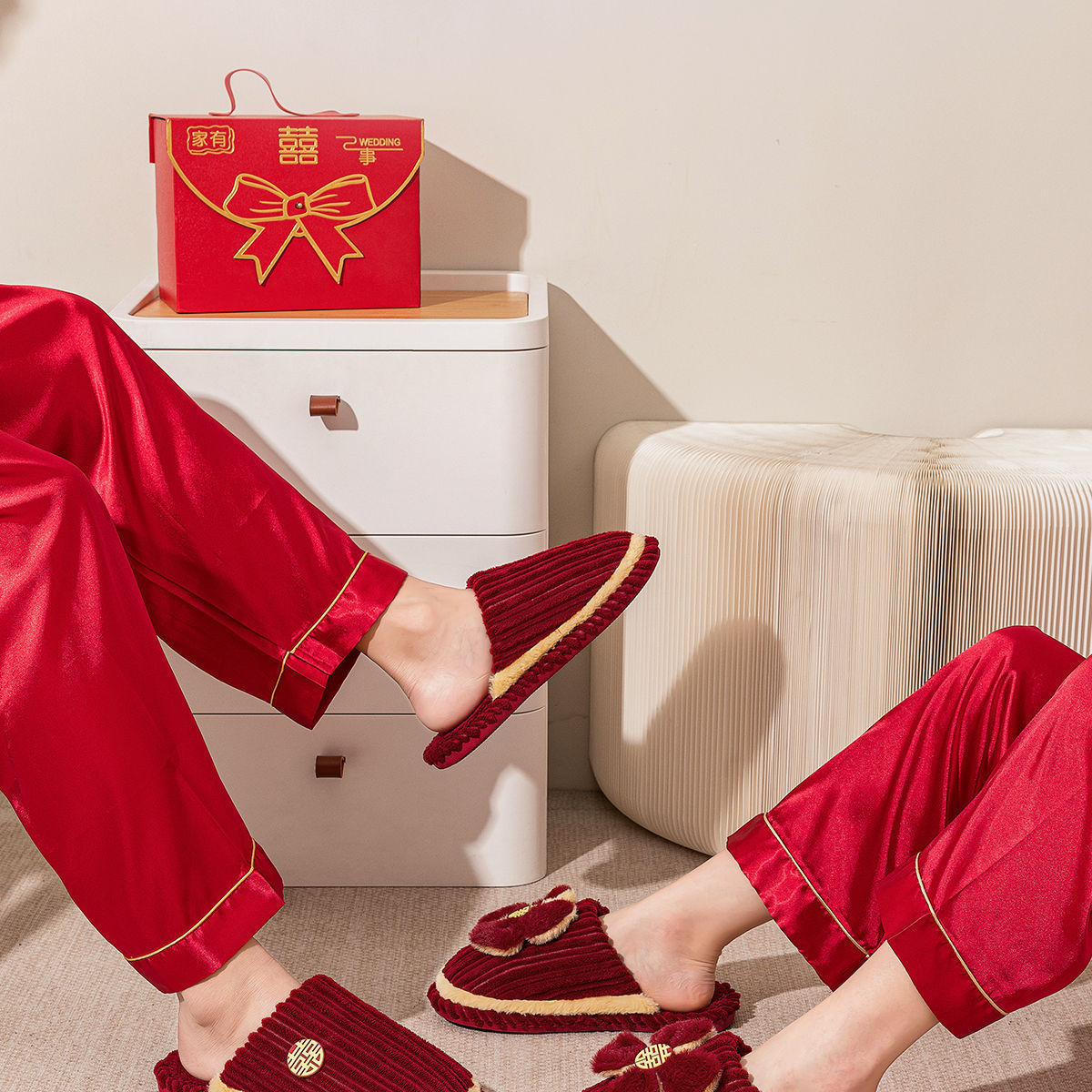 Хлопковые тапочки свадебная пара для женщин осень и зима 2025 новые праздничные свадебные пижамы пара красные свадебные туфли QL