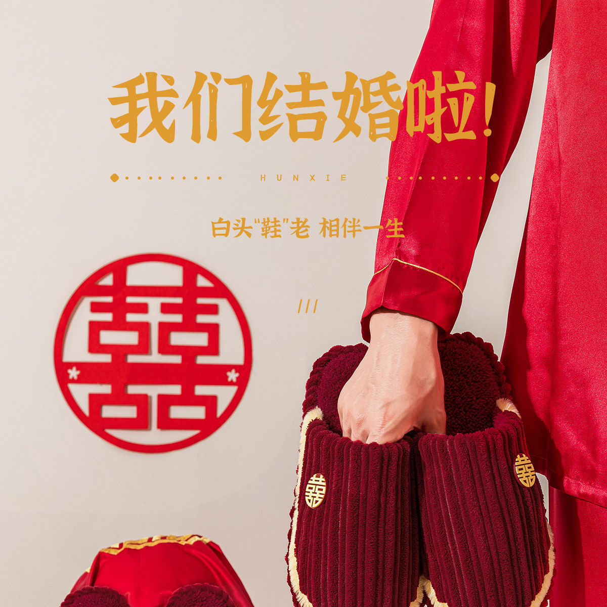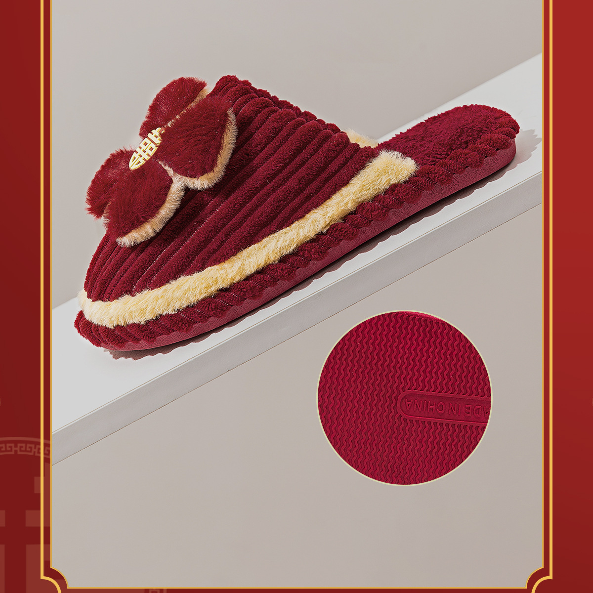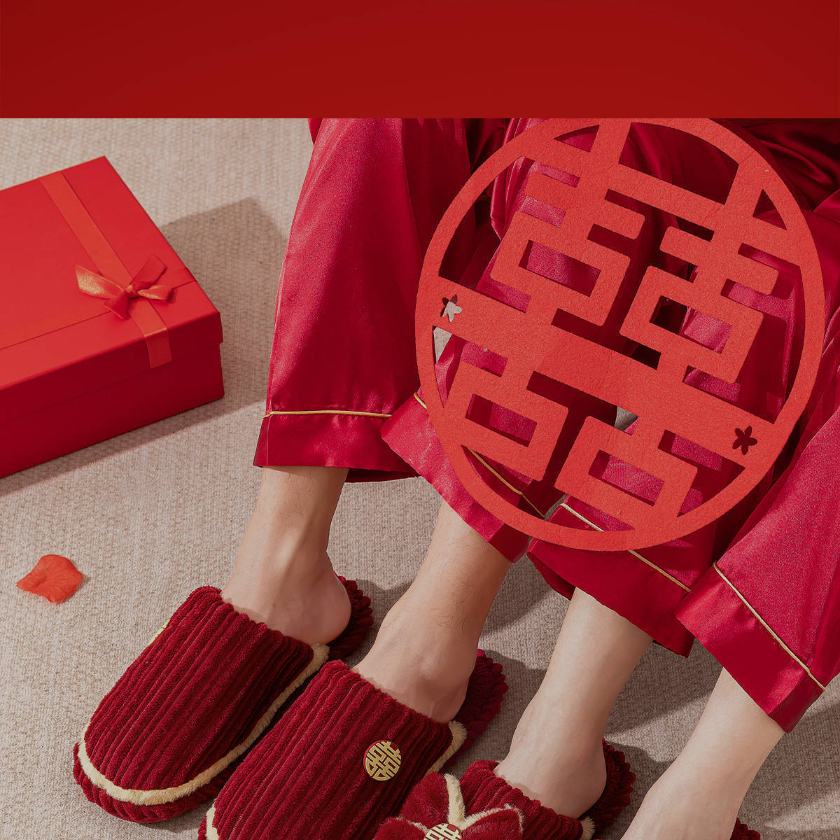 Хлопковые тапочки свадебная пара для женщин осень и зима 2025 новые праздничные свадебные пижамы пара красные свадебные туфли QL