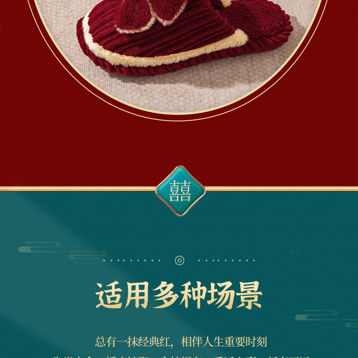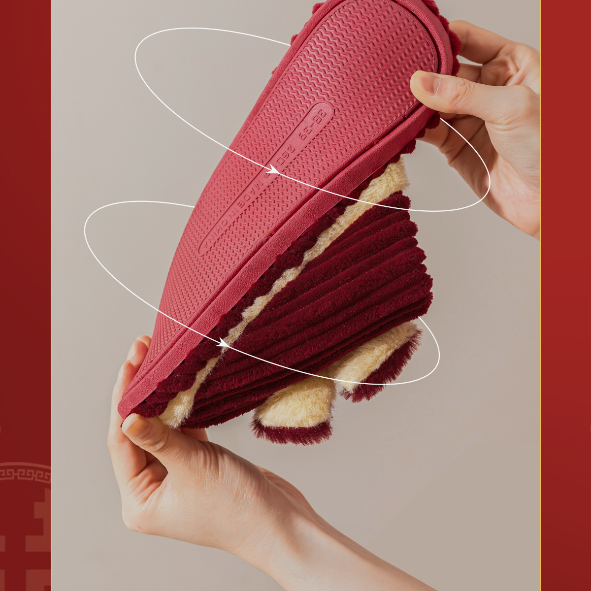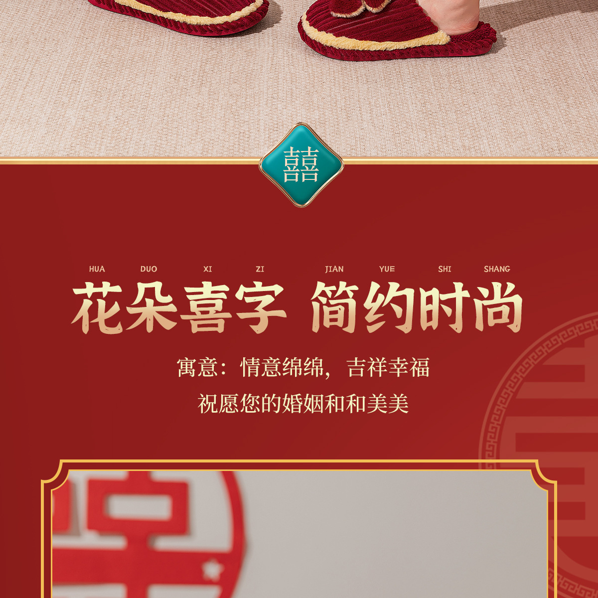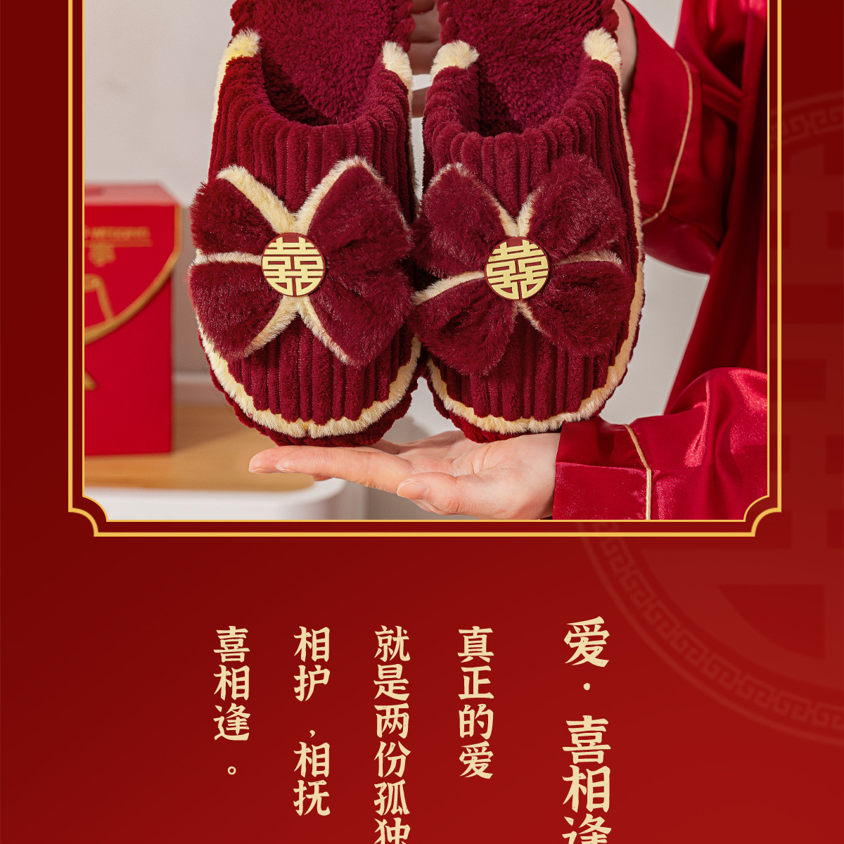 Хлопковые тапочки свадебная пара для женщин осень и зима 2025 новые праздничные свадебные пижамы пара красные свадебные туфли QL