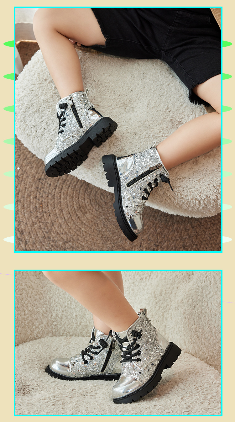 Экологически чистые материалы детские ботинки с пайетками осень-зима обувь для малышей ботинки Мартин для девочек ботинки для мальчиков с флисовой подкладкой мягкие подошвы короткие ботинки