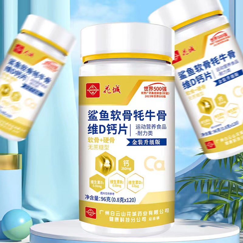 Таблетки кальция с хрящом акулы и витамином D Huacheng, без сахара, 120 таблеток, добавка кальция для коленей