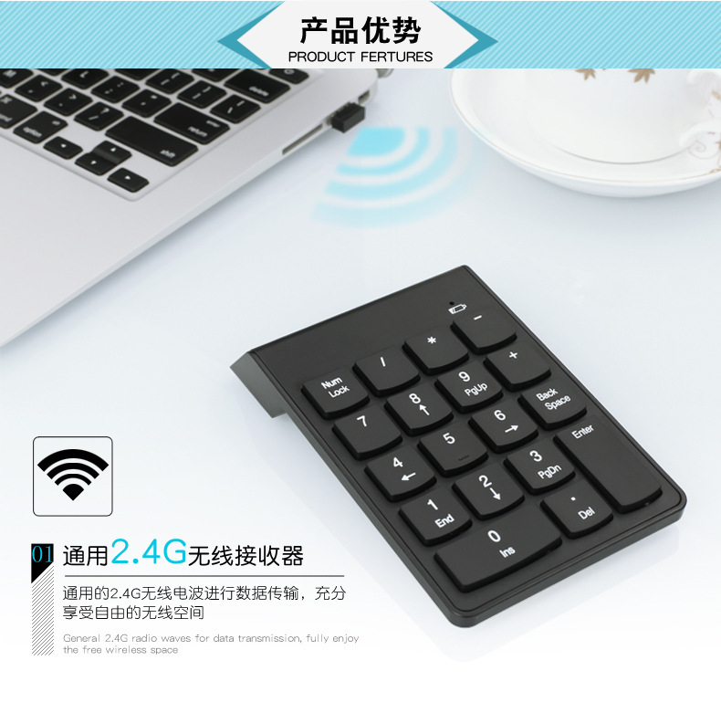 Беспроводная цифровая клавиатура 2.4G асинхронная шоколадная для ноутбука портативная внешняя для учета финансов в офисе