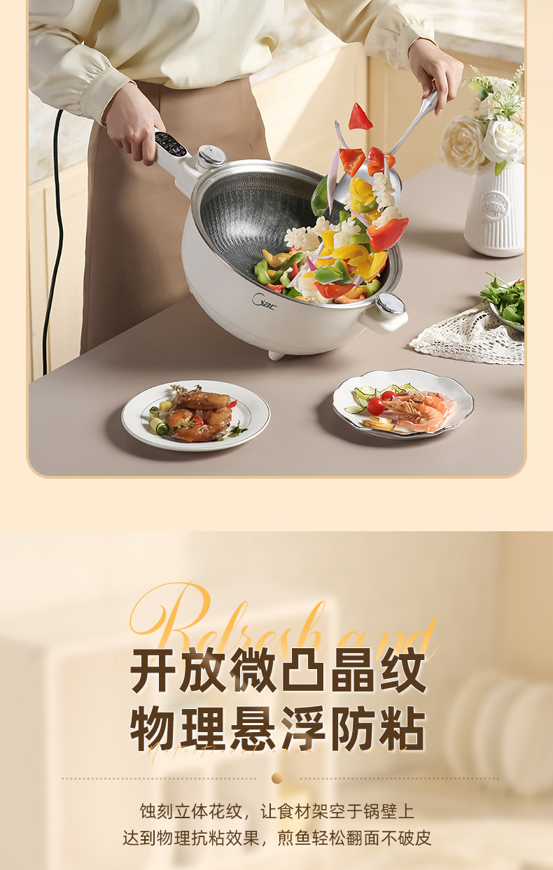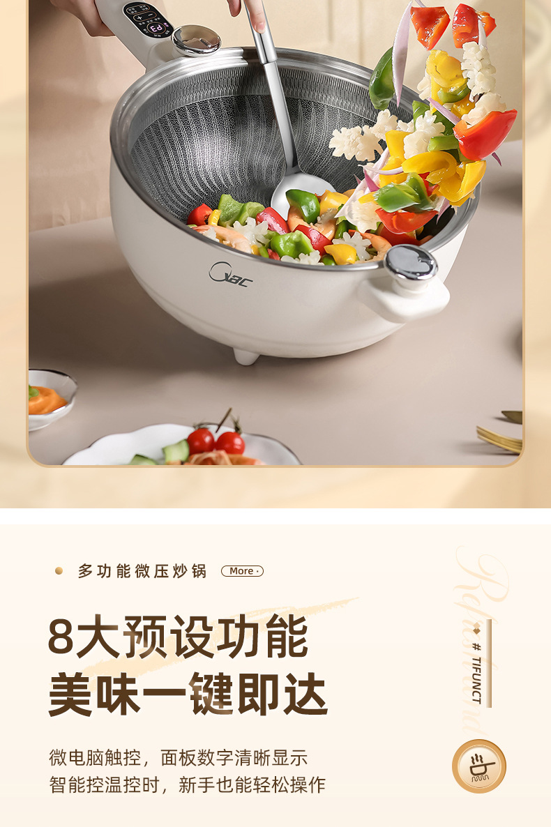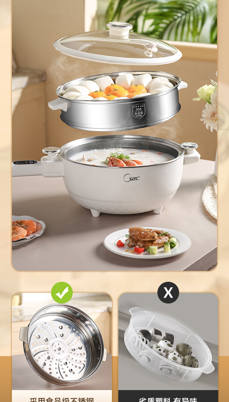 Микро-давление, многофункциональный электрический вок, интегрированная антипригарная сковорода для домашнего использования, нержавеющая сталь, не покрытая, электрическая пароварка для общежития