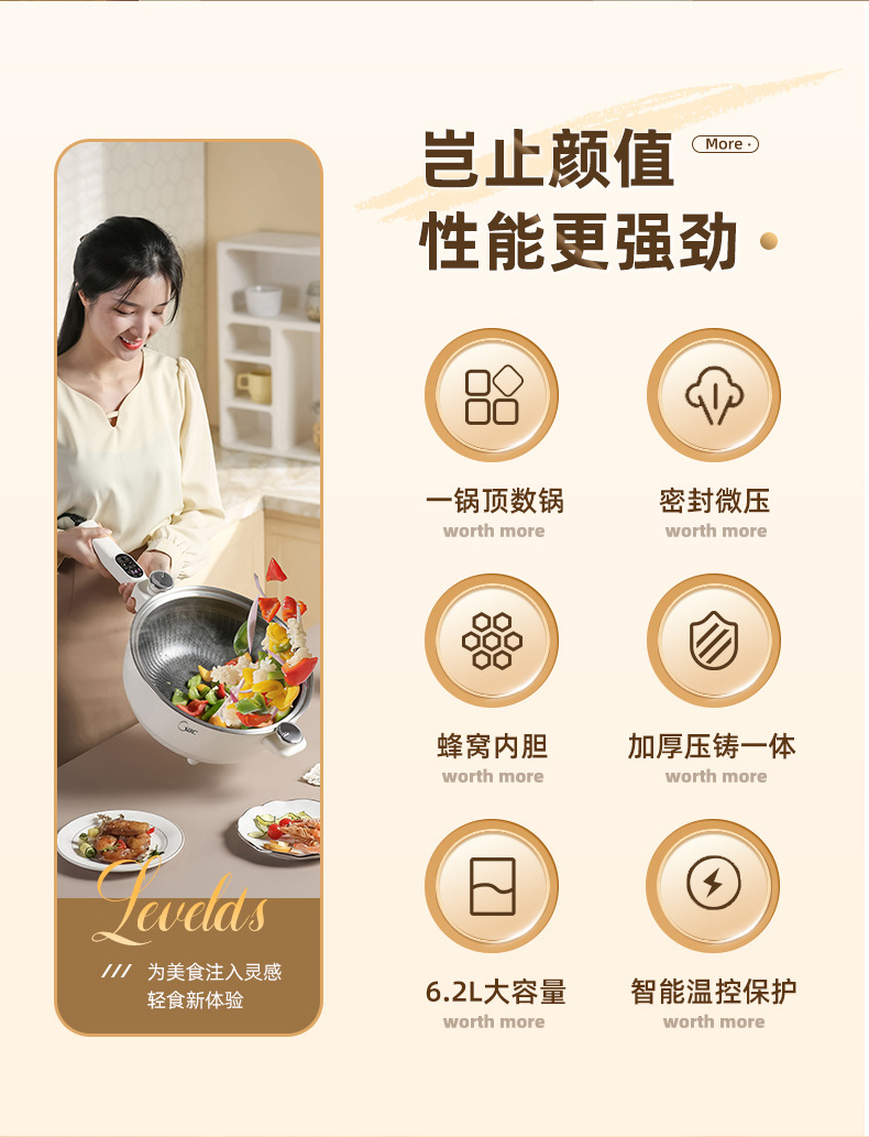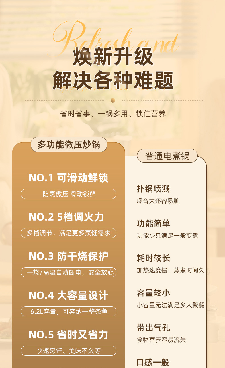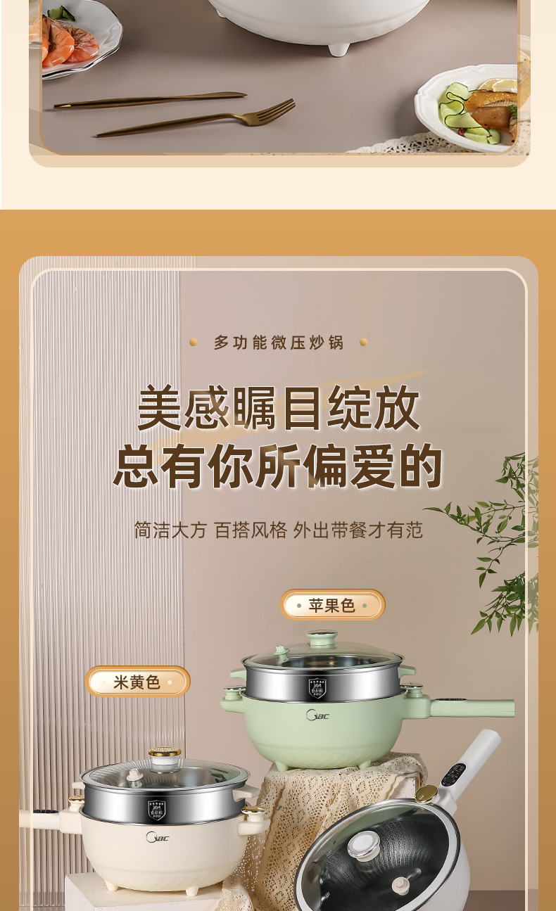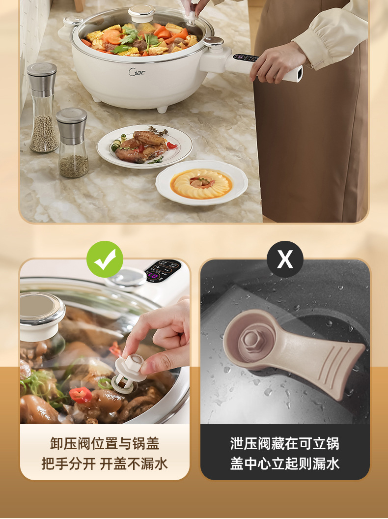 Микро-давление, многофункциональный электрический вок, интегрированная антипригарная сковорода для домашнего использования, нержавеющая сталь, не покрытая, электрическая пароварка для общежития