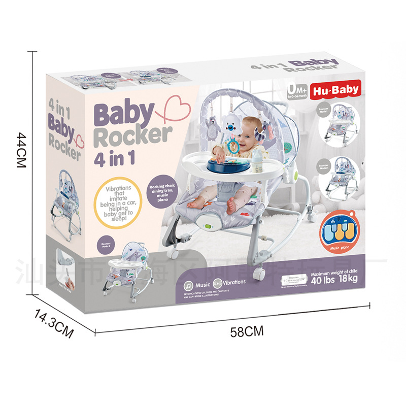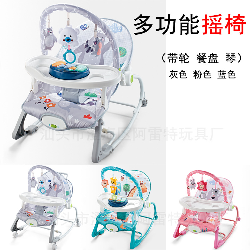Многофункциональная качалка для младенцев с обеденной тарелкой и пианино, универсальные колеса, музыкальный комфорт, электрическая качалка