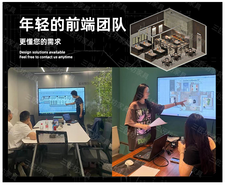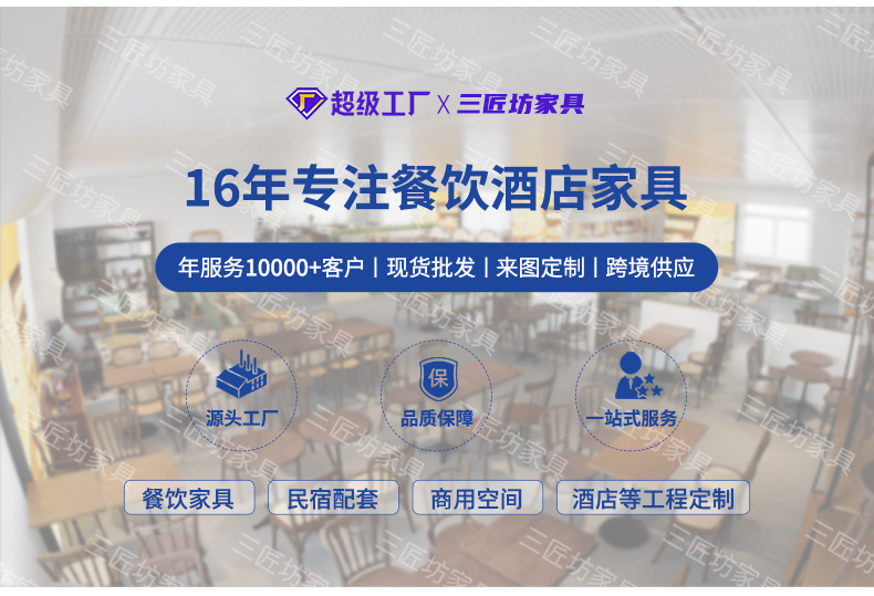 佛山市三匠坊家具有限公司,坐落于中国家具之城--佛山顺德,公司拥有自己的办公楼和生产工厂,工厂总面积超7000多平方,另有超3000平方展厅。15年深耕商业空间家具研发制造,构建实木、五金、软体三大核心材质矩阵,为连锁餐饮、员工食堂、星级酒店、高端会所,民宿,个人店铺等提供跨材质全案定制服务。依托自主工厂及强大的供应链体系,实现设计创新与工程交付双轮驱动。公司拥有专业的设计生产团队,提供一对一专属定制服务,同时配备70多台先进家具生产设备。从原材料入厂到成品出货,每个环节均由经验丰富的专业师傅严格把关,确保产品质量卓越。产品远销世界各地,服务多个产业,赢得了广泛的市场认可和良好的客户口碑。