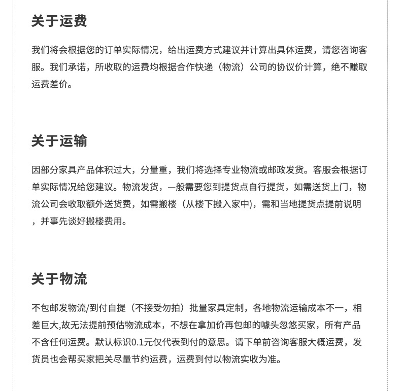 🚚 关于运费:由于本公司产品主要以批发为主且商品体积较大,运费需根据具体地址和订单情况计算,下单前可以咨询客服给您报价~