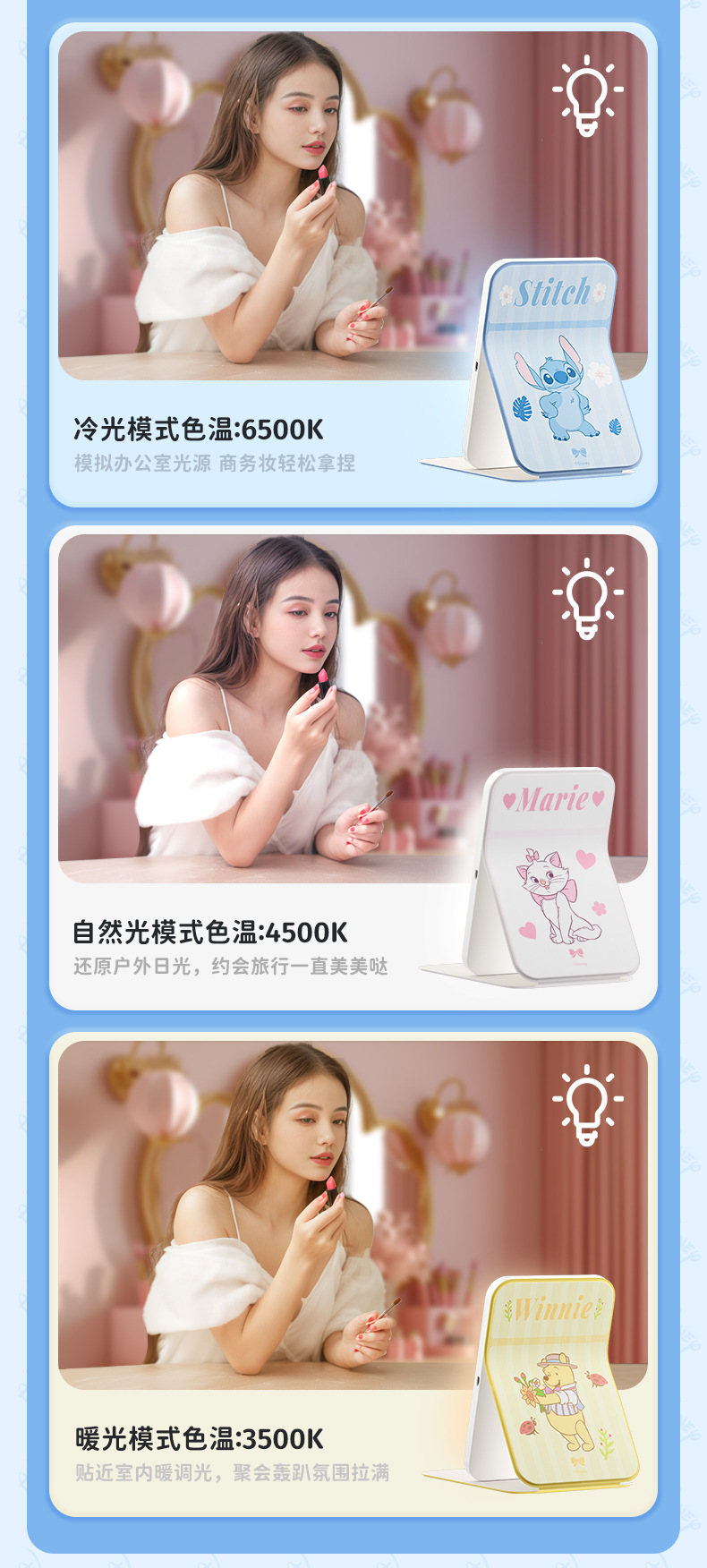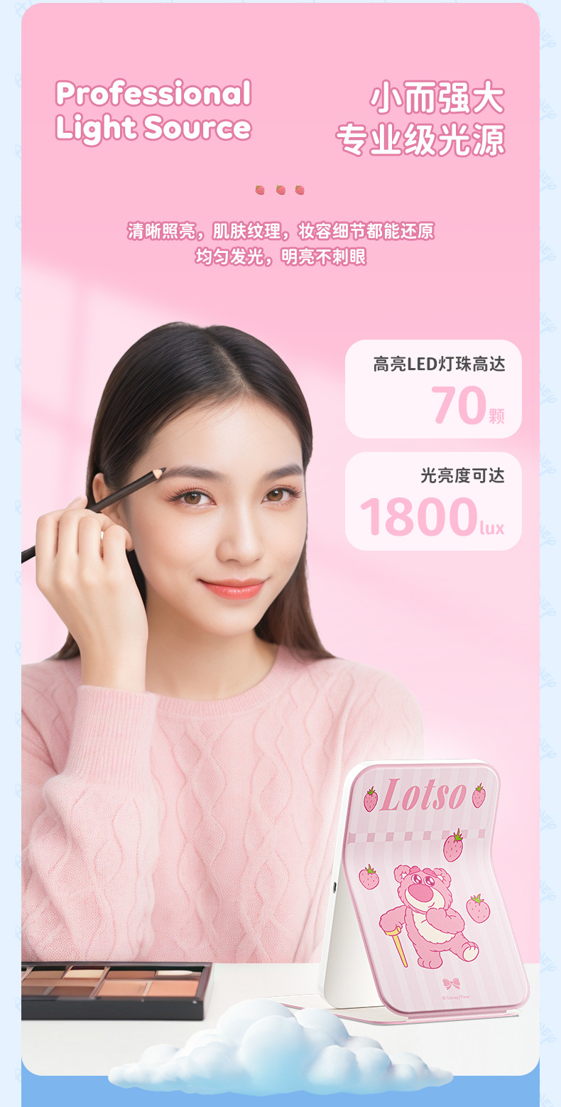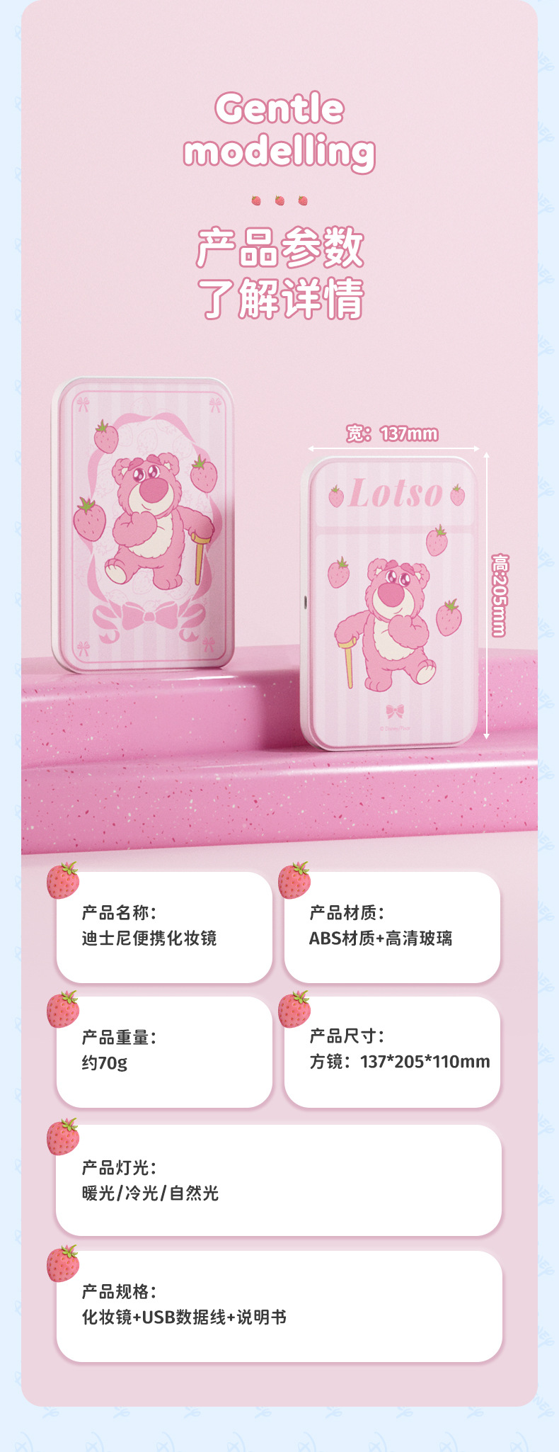 Оригинальное косметическое зеркало, зеркало красоты, клубничное, Винни-Пух, Ститч, Мэри Кэт, портативное LED с подсветкой