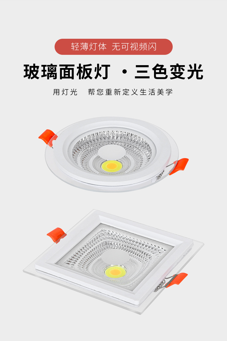Светодиодная стеклянная панельная лампа, прямая продажа с завода, большой объем в наличии, встраиваемая 6W10W, трехцветное диммирование, светильник Skd