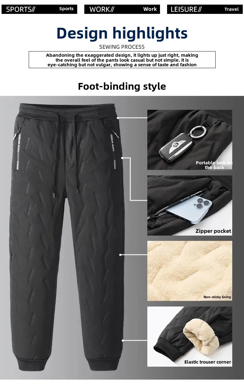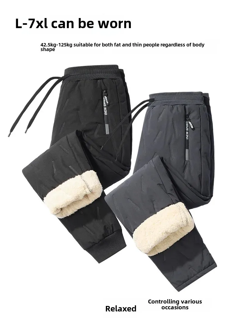 Зимние новые брюки из овечьего бархата для мужчин, флисовая подкладка, трехслойные стеганые толстые брюки из овечьего бархата для мужчин