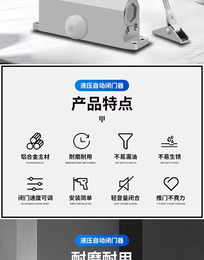 Гидравлический доводчик, бытовой, для раздвижных дверей, бесшумное автоматическое закрывающее устройство, для противопожарной двери