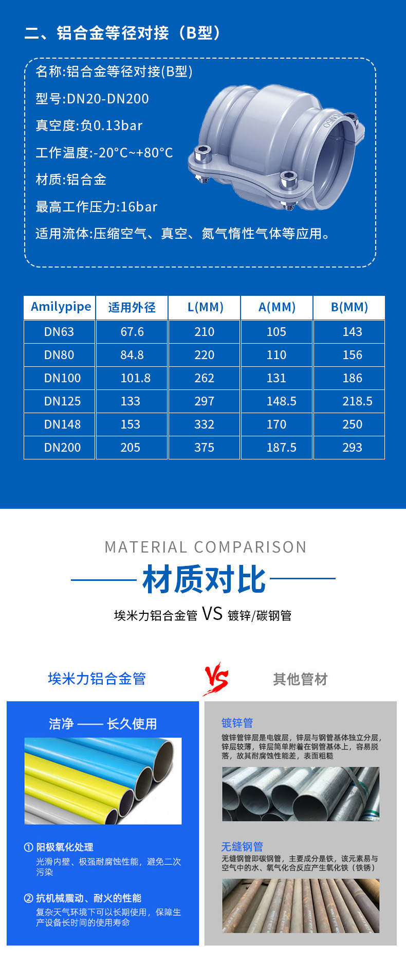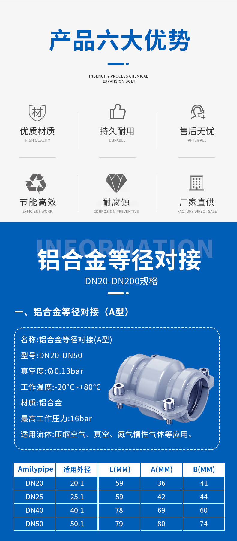 Соединение трубы к трубе, одинаковый диаметр, быстрое соединение, алюминиевый сплав, прочный, в наличии на складе, прямая продажа Amili
