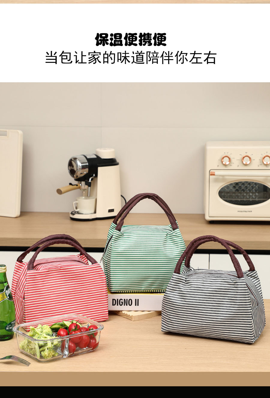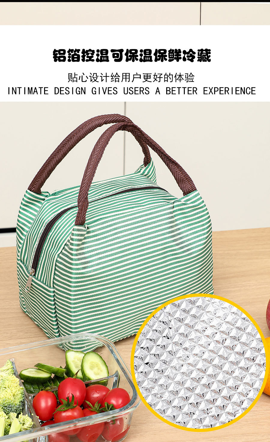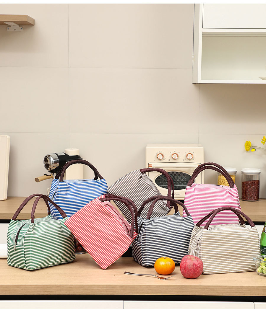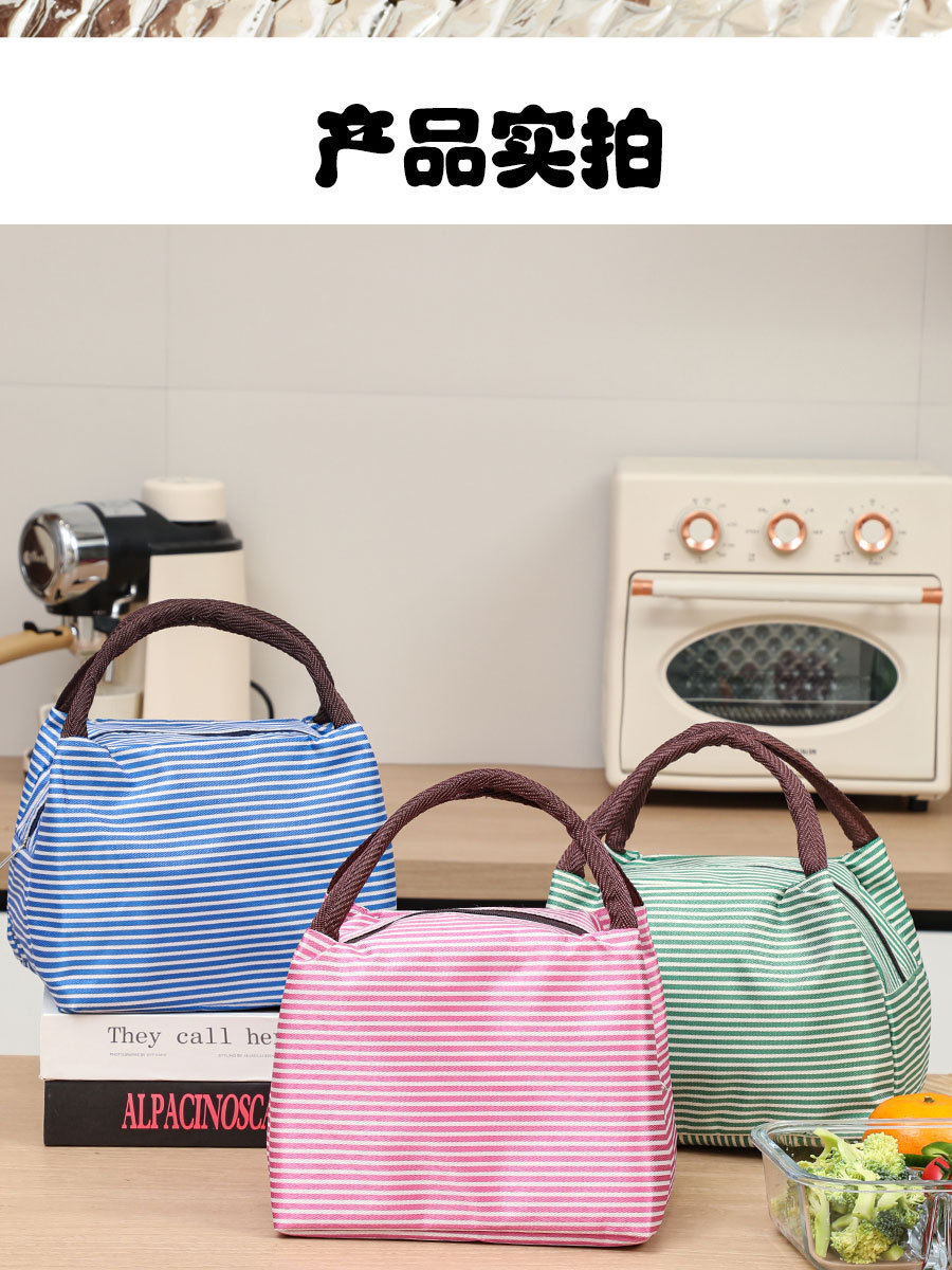 Модная трапециевидная полосатая портативная сумка для обеда, изолированная сумка для ланча, сумка для международной торговли, алюминиевая пленка с рисовой сумкой, оптовая продажа
