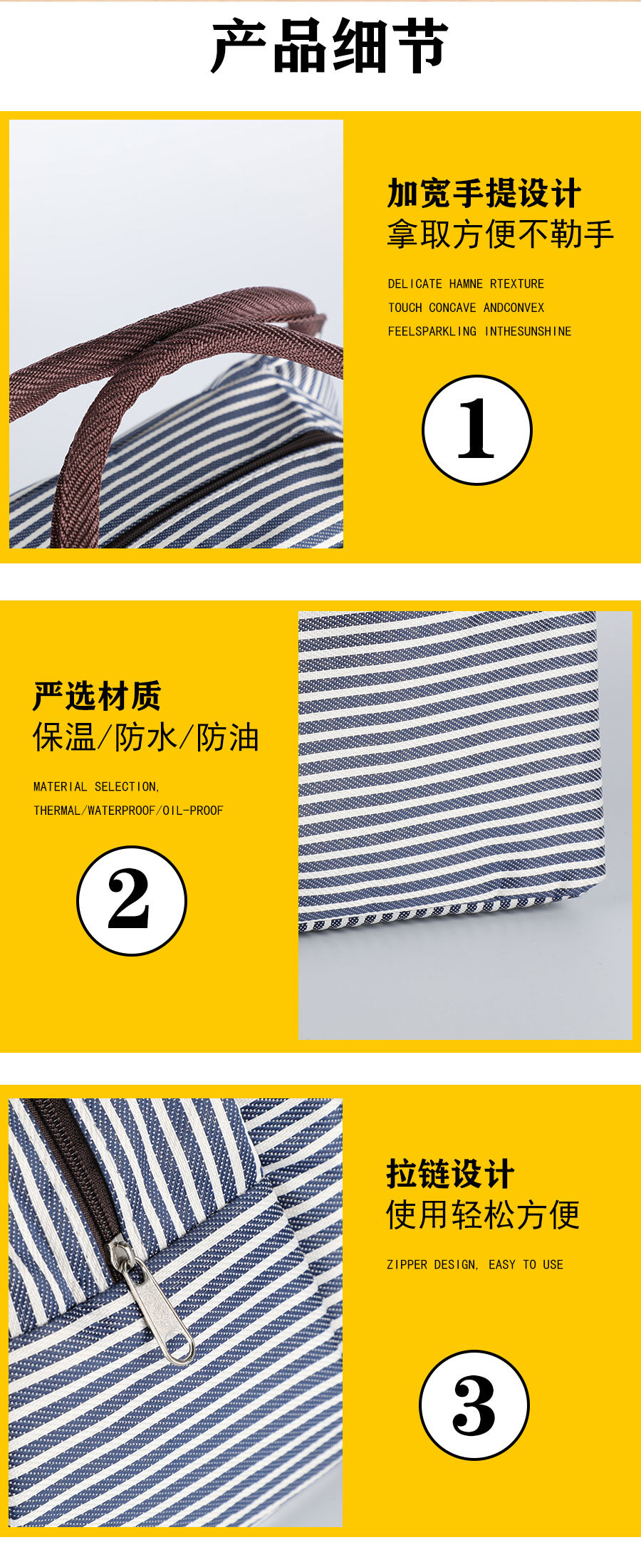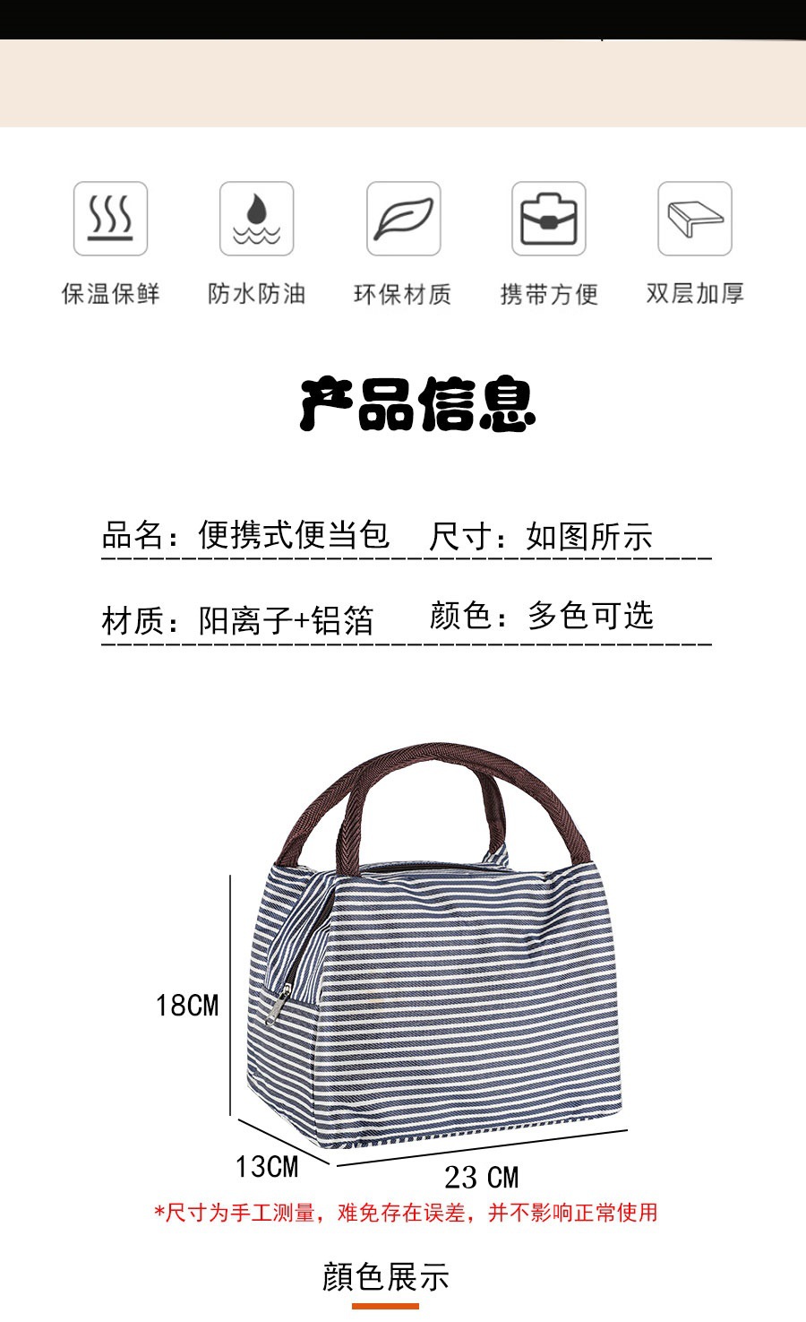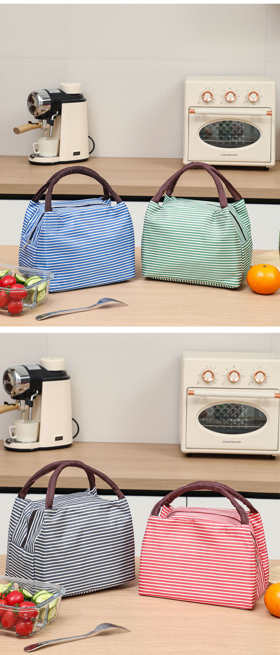 Модная трапециевидная полосатая портативная сумка для обеда, изолированная сумка для ланча, сумка для международной торговли, алюминиевая пленка с рисовой сумкой, оптовая продажа
