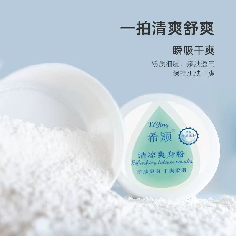Оптовая упаковка талькового порошка Xiying 140г охлаждающий и освежающий, впитывающий пот, для лечения потницы с пуховкой