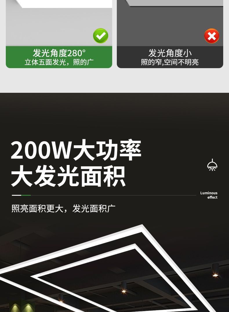 ![]() | 120*25cm-200w-white light [ceiling installation] | Glow on five sides | ¥83.3 / ≈ 1 003 ₽ | 456834 | 5552417869048 | |