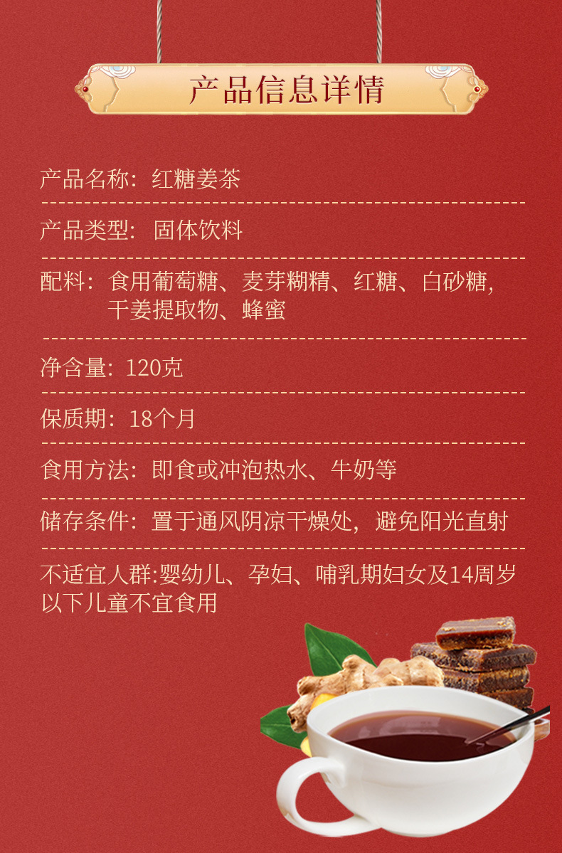 Чай с имбирем и коричневым сахаром Beijing Tongrentang Qiang 120г Питательный теплый тоник для женщин Индивидуальная упаковка