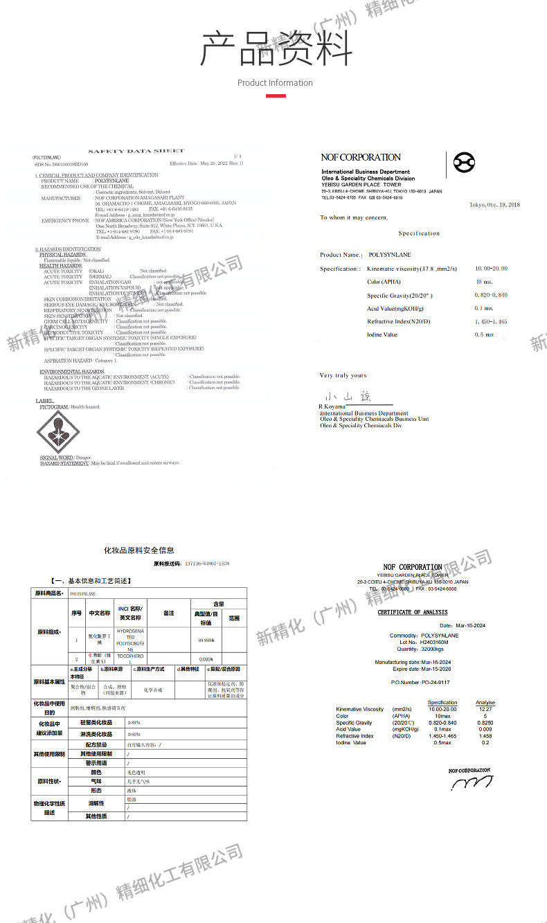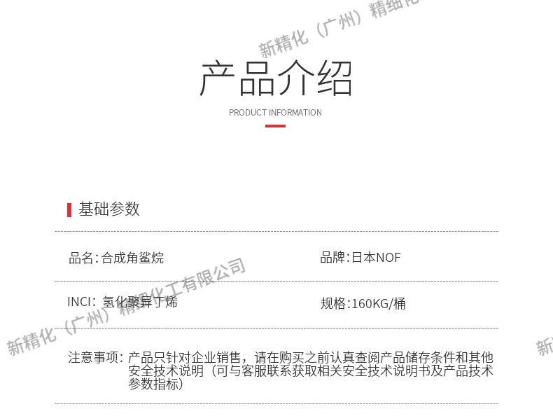 Южно-Китайский генеральный агент Япония Ноф синтетический сквалан гидрогенизированный полиизобутилен косметического качества сырье