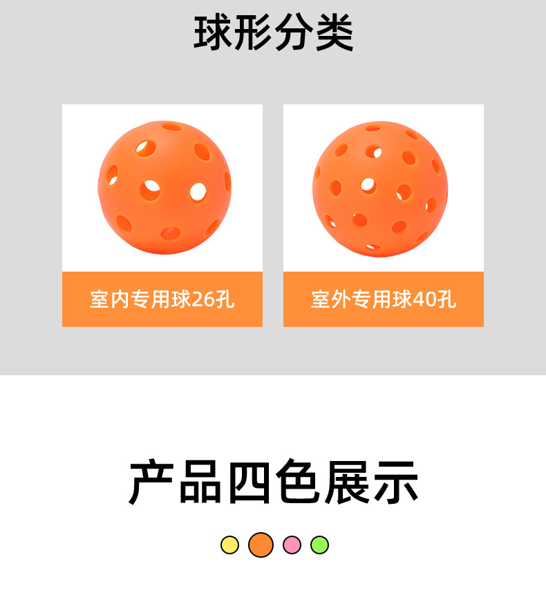 Кросс-бордерный мяч для пиклбола 26/40 отверстий для indoor и outdoor практики, высокоэластичный пластиковый мяч для детей