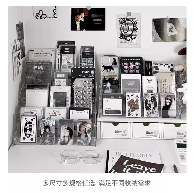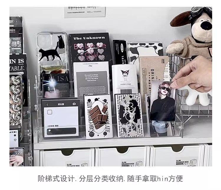Ступенчатый прозрачный настольный ящик для хранения аккаунтов Ступенчатая полка для хранения Полный набор акриловых карточек