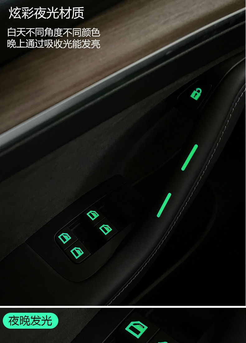 Кнопка переключателя функции в автомобиле, цветная светящаяся наклейка, антивандальная, износостойкая наклейка для переключателя стеклоподъемника