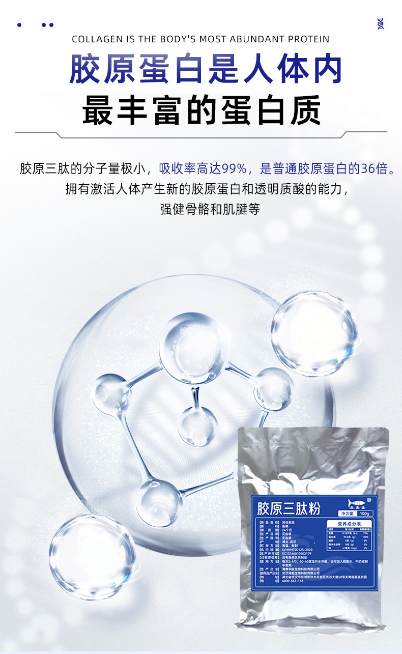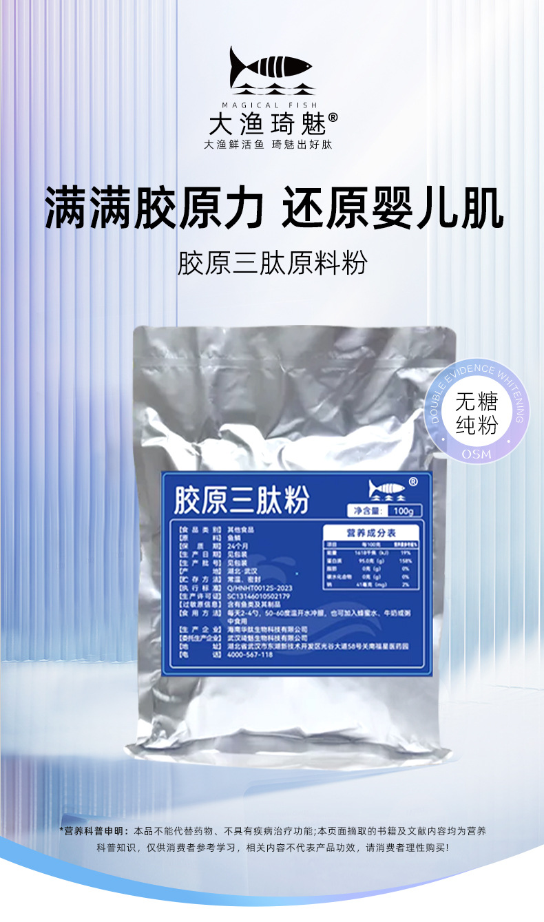 Порошок коллагена трипептида Hainan Huayan 100% маломолекулярный для красоты и ухода за кожей, сырье для оральной жидкости