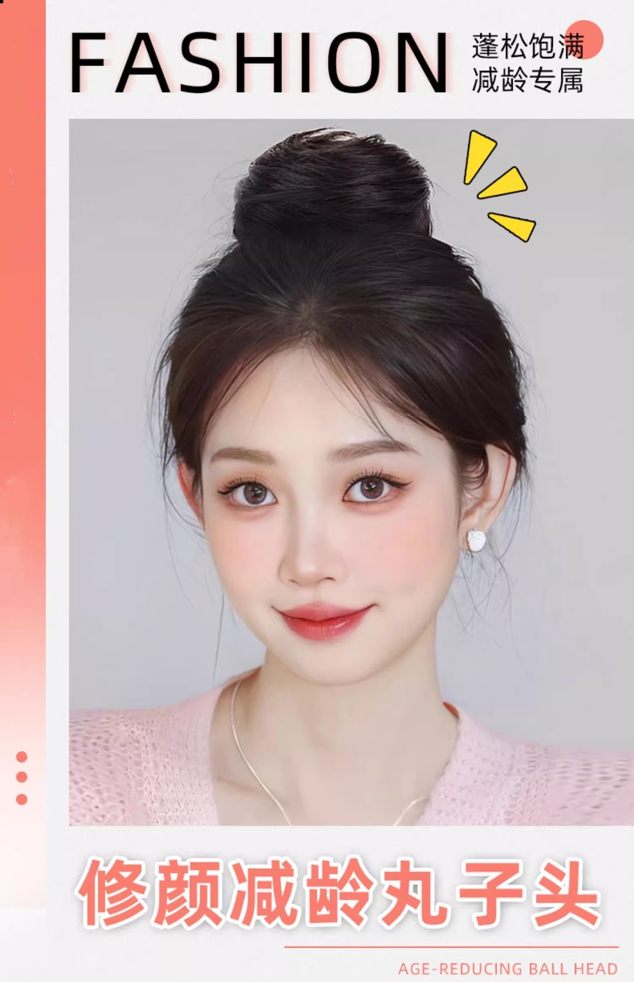 Парик из натуральных волос с шариком для женщин, парик в виде цветка, искусственный шарик для головы