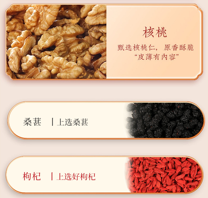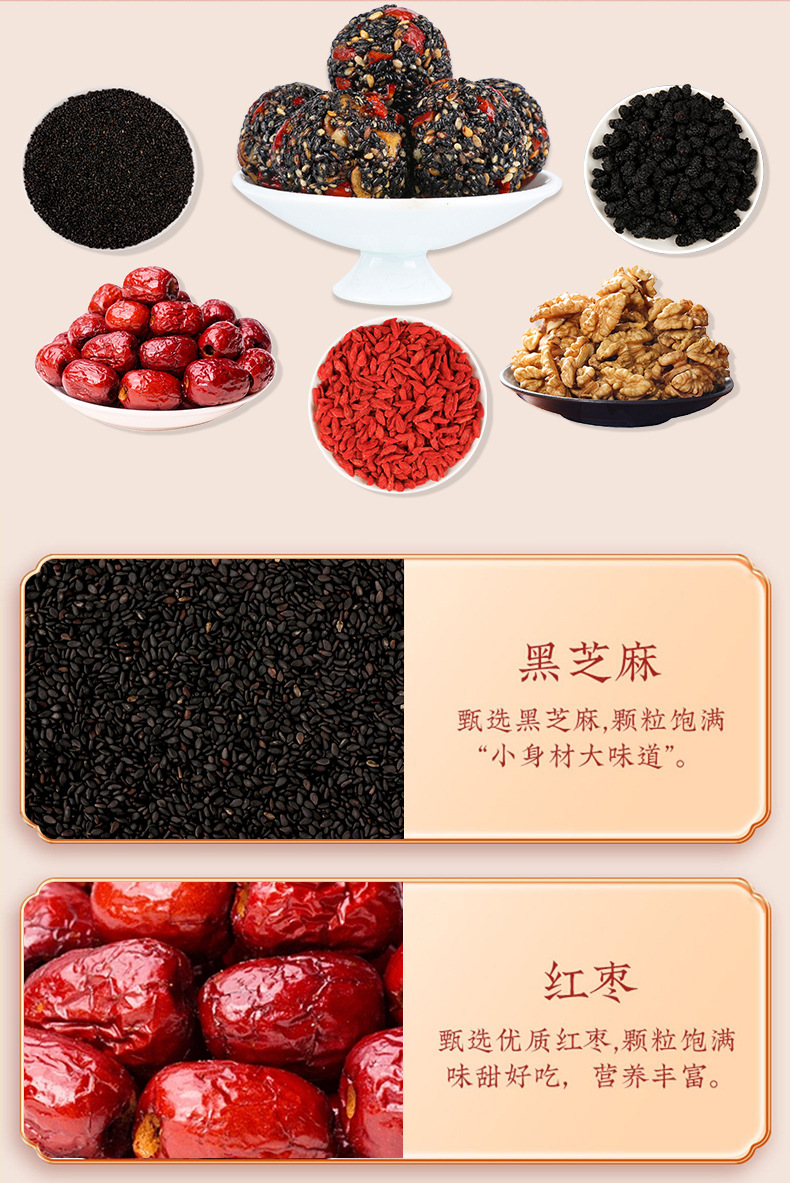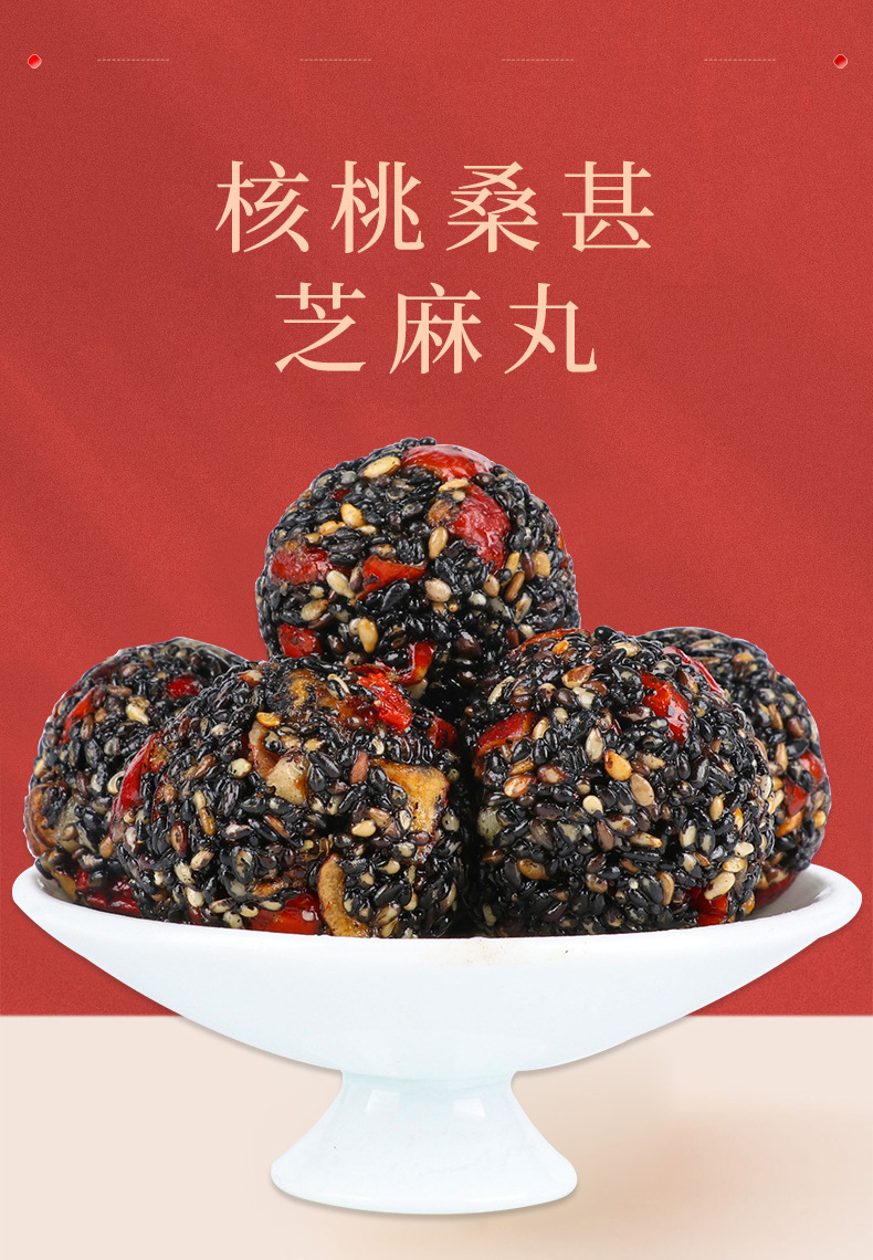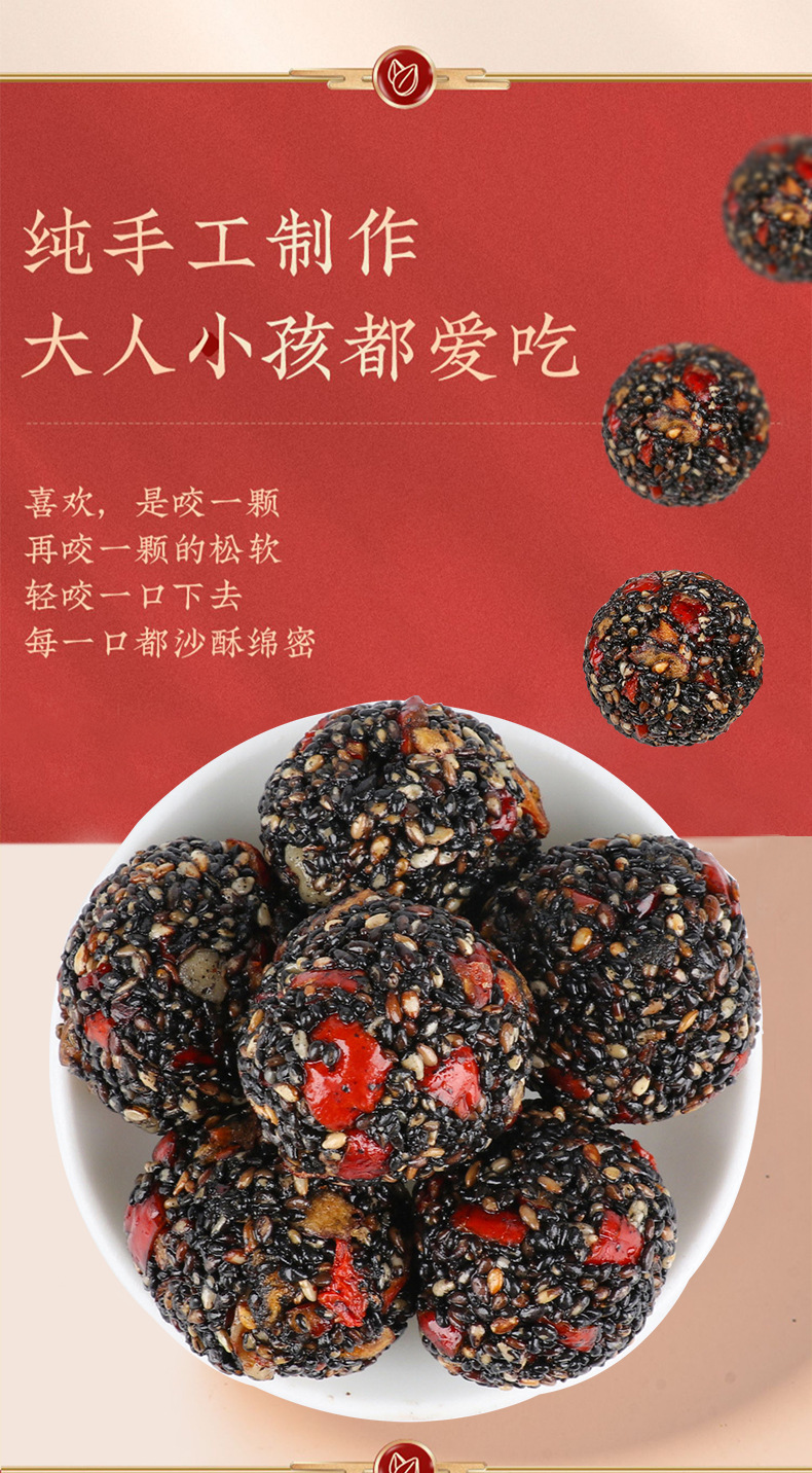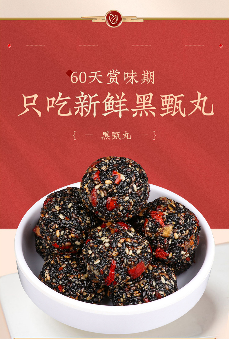 Пилюли из черного кунжута Wuzhen с медом, черной шелковицей, ягодами годжи, красными финиками, грецкими орехами, в индивидуальной упаковке, 500 г