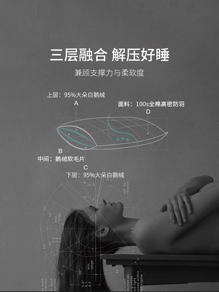 Подушка с белым гусиным пухом прямоугольная для пятизвездочного отеля защита шейного отдела дома хлопковая подушка пуховая