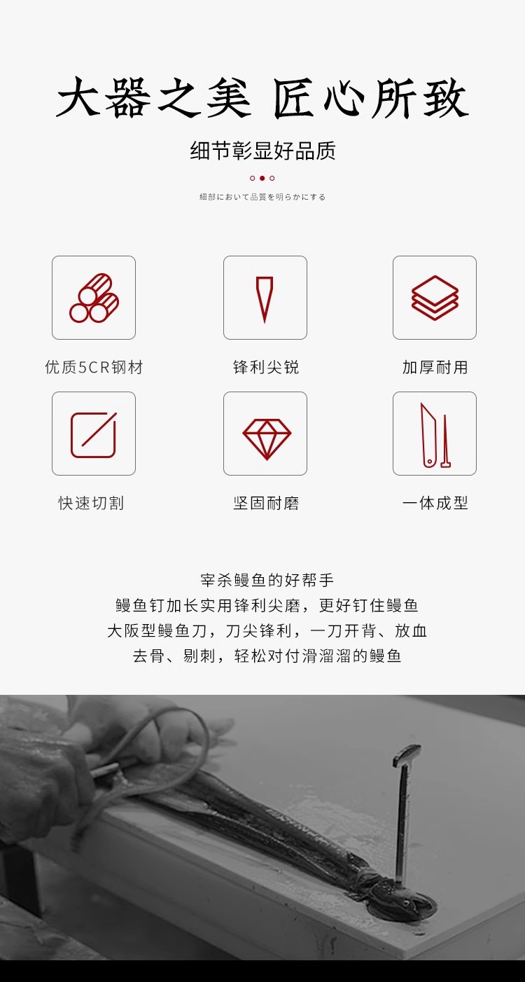 японский нож для угря, специальный нож для убойного угря, нож для рыбы, нож для филе рыбы, нож для разделки угря Эдо