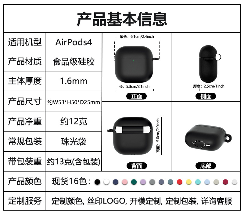 ![]() | 129#Black three-piece set (protective case*1+same color cleaning pen*1+same color silicone lanyard*1) | AirPods4 | ¥4.7 / ≈ 57 ₽ | 9959 | 5928461112591 | |