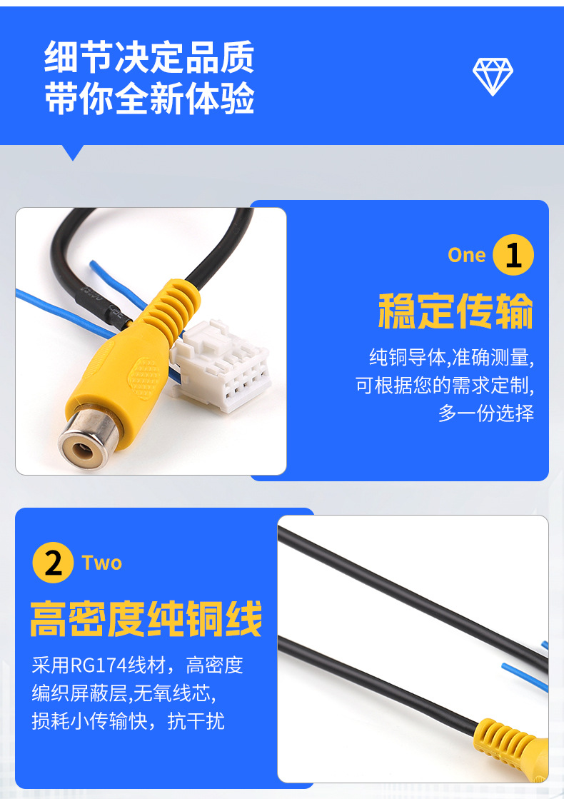 Цель Reversing rear view input cable, reversing image interface, special tail cable for navigator reversing rearview mirror image, reversing video, car navigation and other devices.