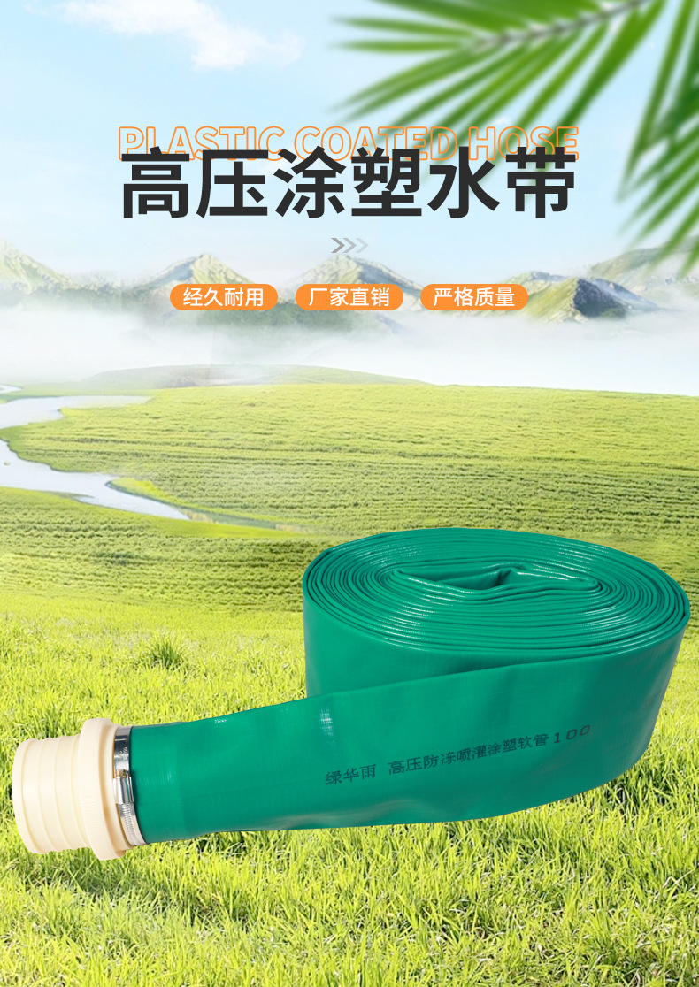 Сельскохозяйственный зеленый пластиковый поливочный ремень высокого давления для полива и дренажа, износостойкий ПВХ