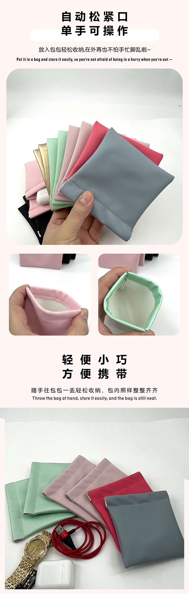 Автоматическая закрывающаяся кожаная водонепроницаемая сумка для хранения, монетница, мини-косметическая упаковка, кастомизация