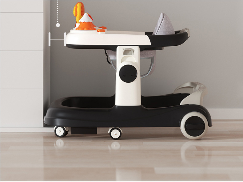 功能描述 秒变餐盘、后轮调速、两侧刹车、卡通音乐、加大加宽座舱、防滑扶手、可拆卸变助步车、座垫自由调节、万向轮 、一键折叠