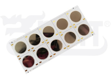 铝镜产品在425nm以上的一个很宽的波长范围内具有非常稳定的反射率。针对CoB-LED应用 的典型特征波长,例如:针对蓝光LED芯片的特征波长~450nm,白光LED荧光粉的特征波长 ~550nm,黄光LED荧光粉的特征波长~625nm,相对应的反射率极高。